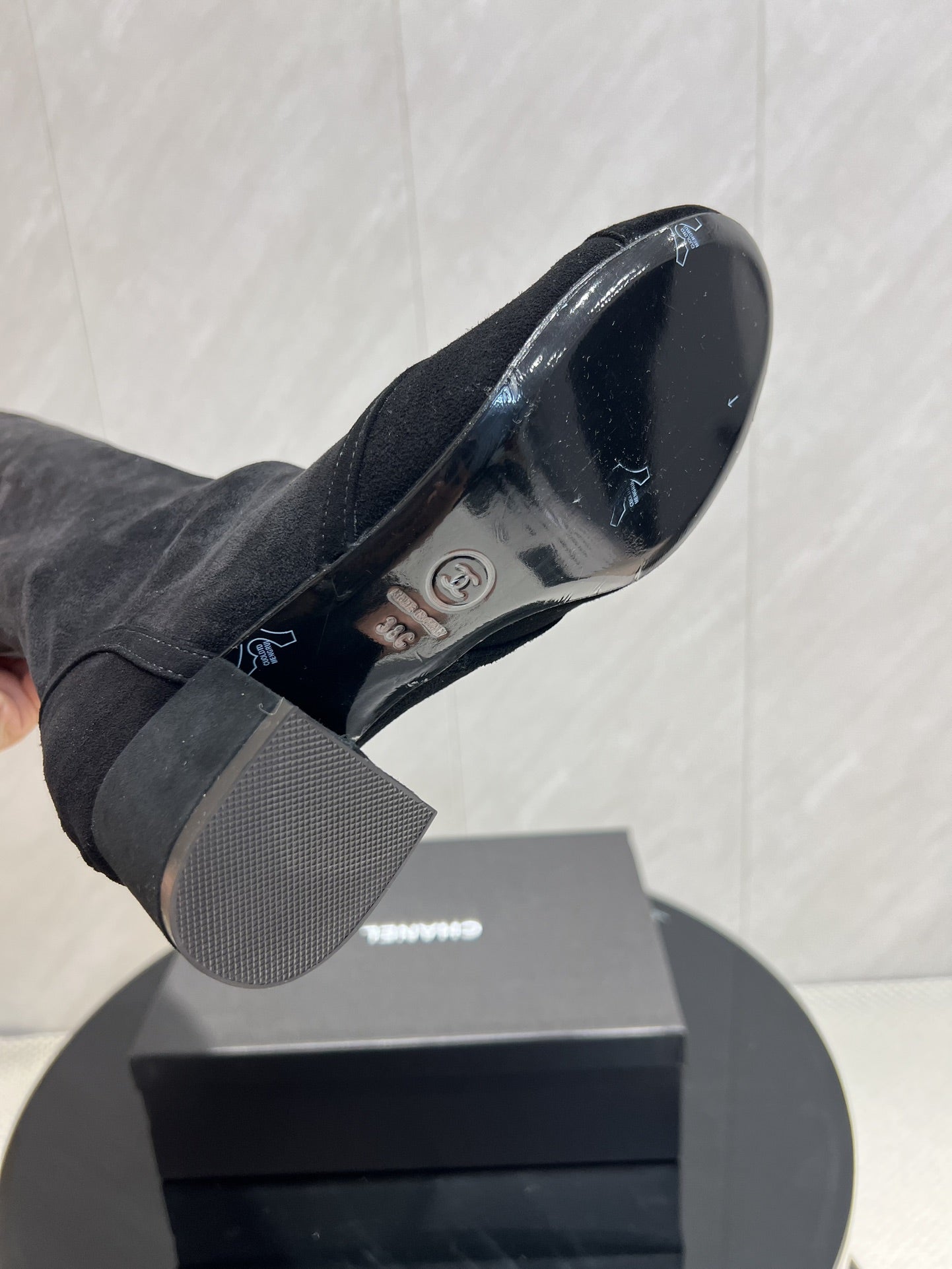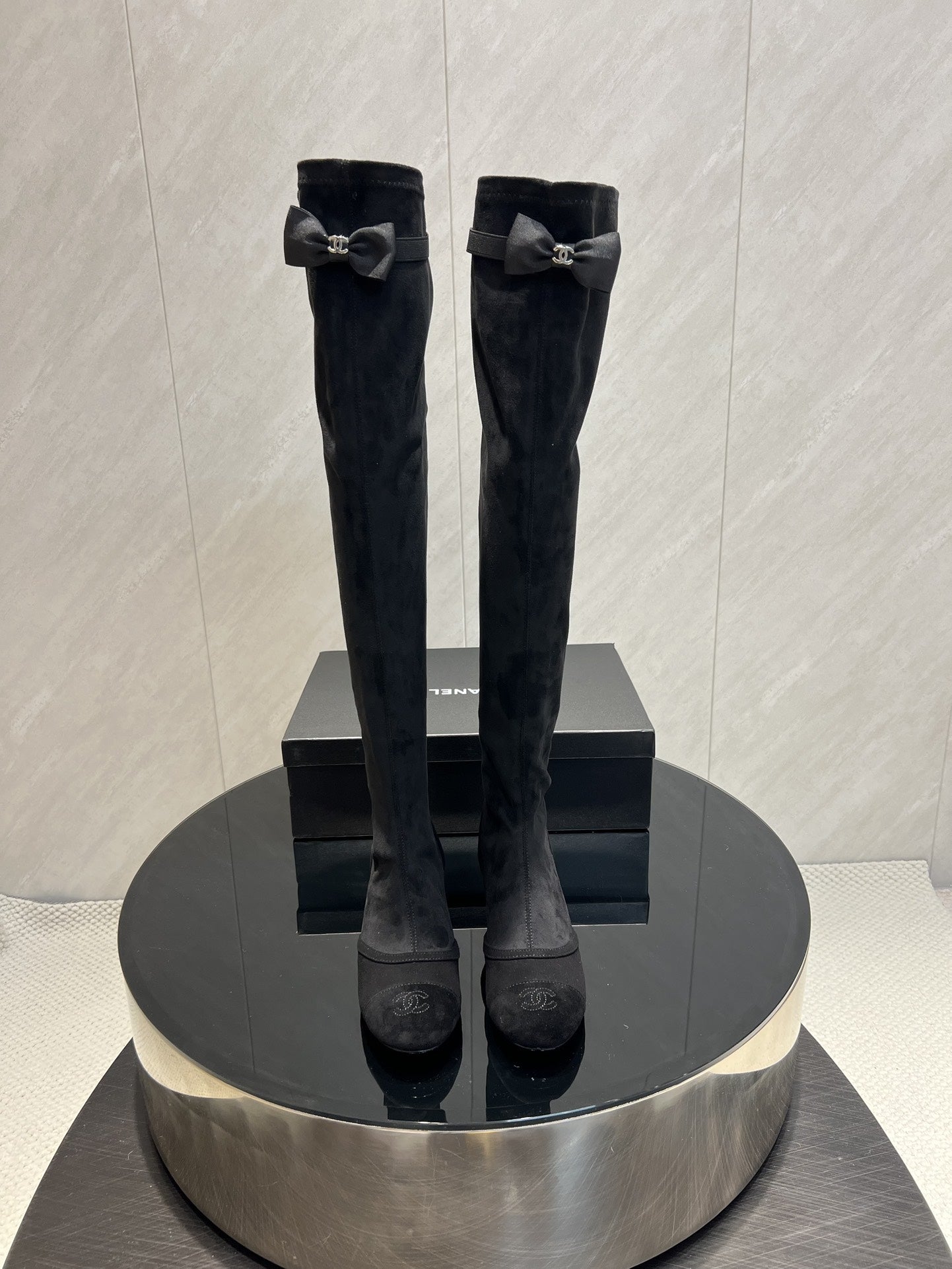 CC 25 Bowknot Stretch Boots Black Velvet Sheepskin 516421