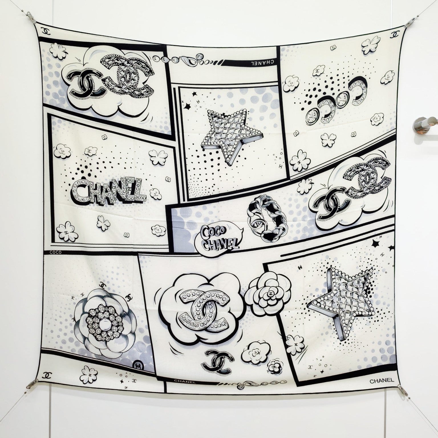 CC 25 Camellia Scarf 140CM White Black Cashmere 293083