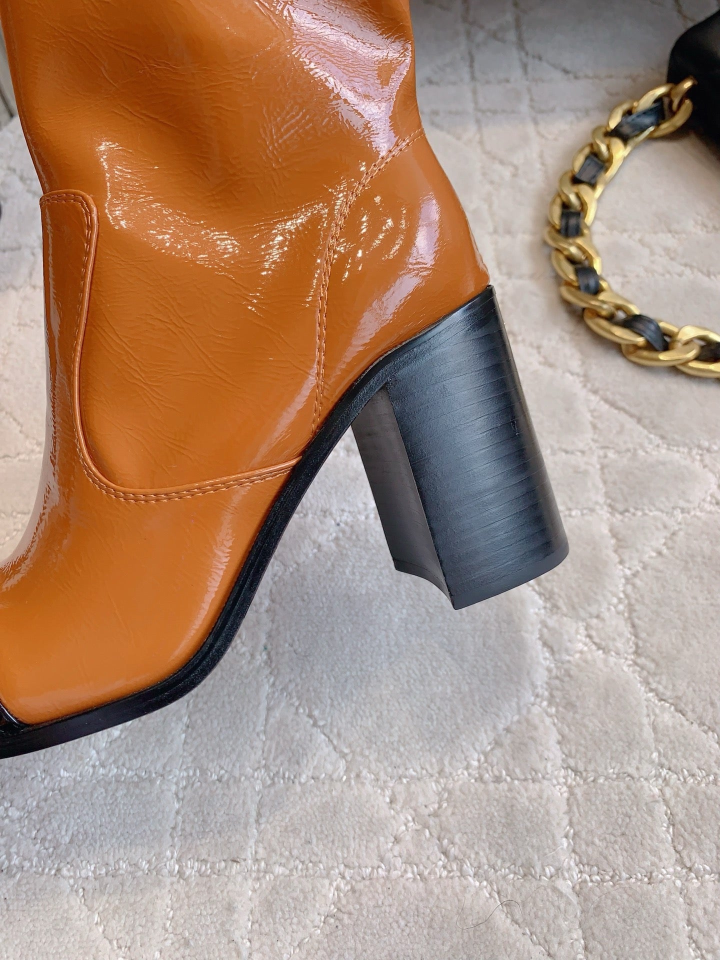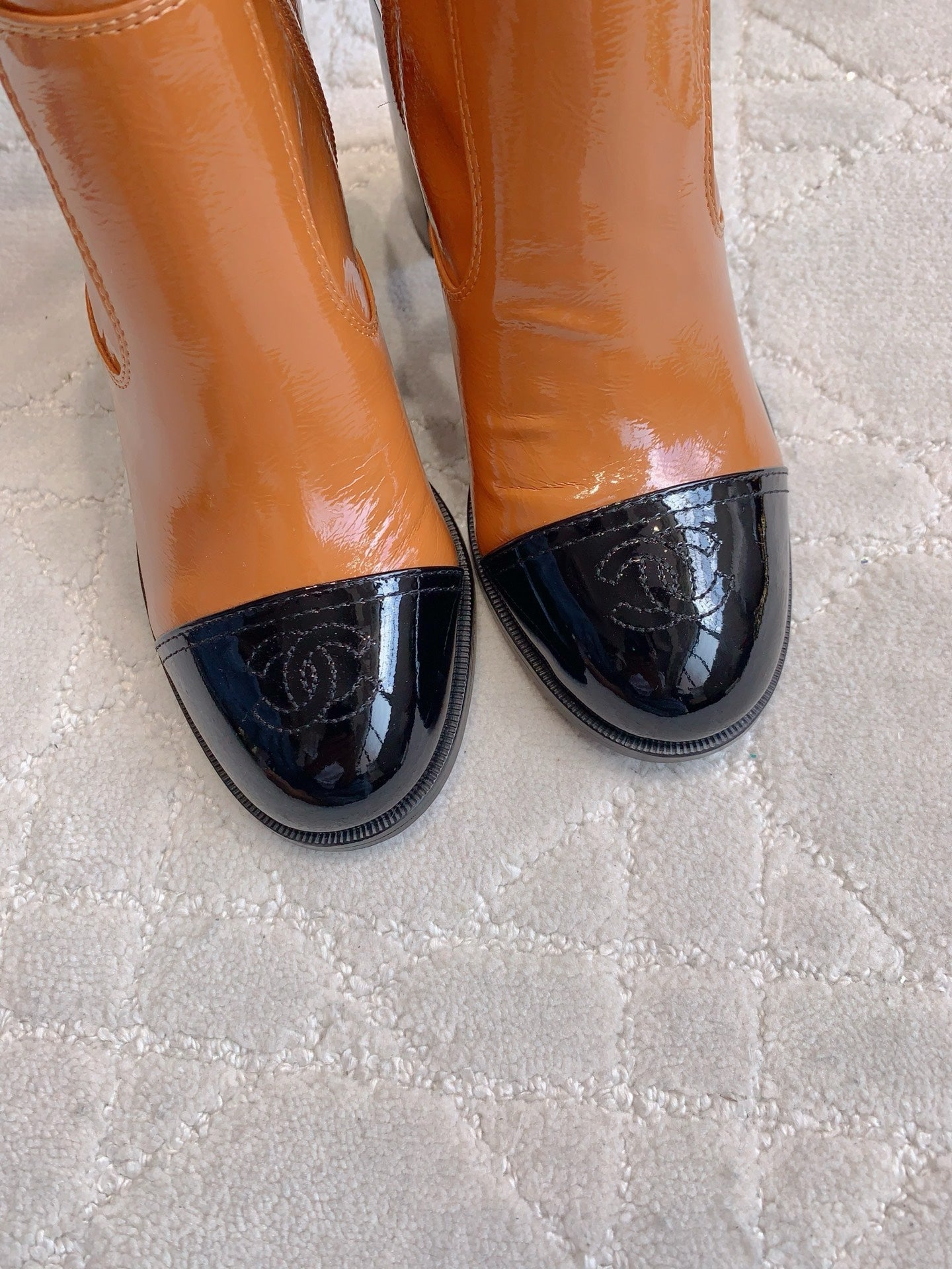 CC 25 Heeled Short Boot Camel Brown mix Black Patent Leather 516678