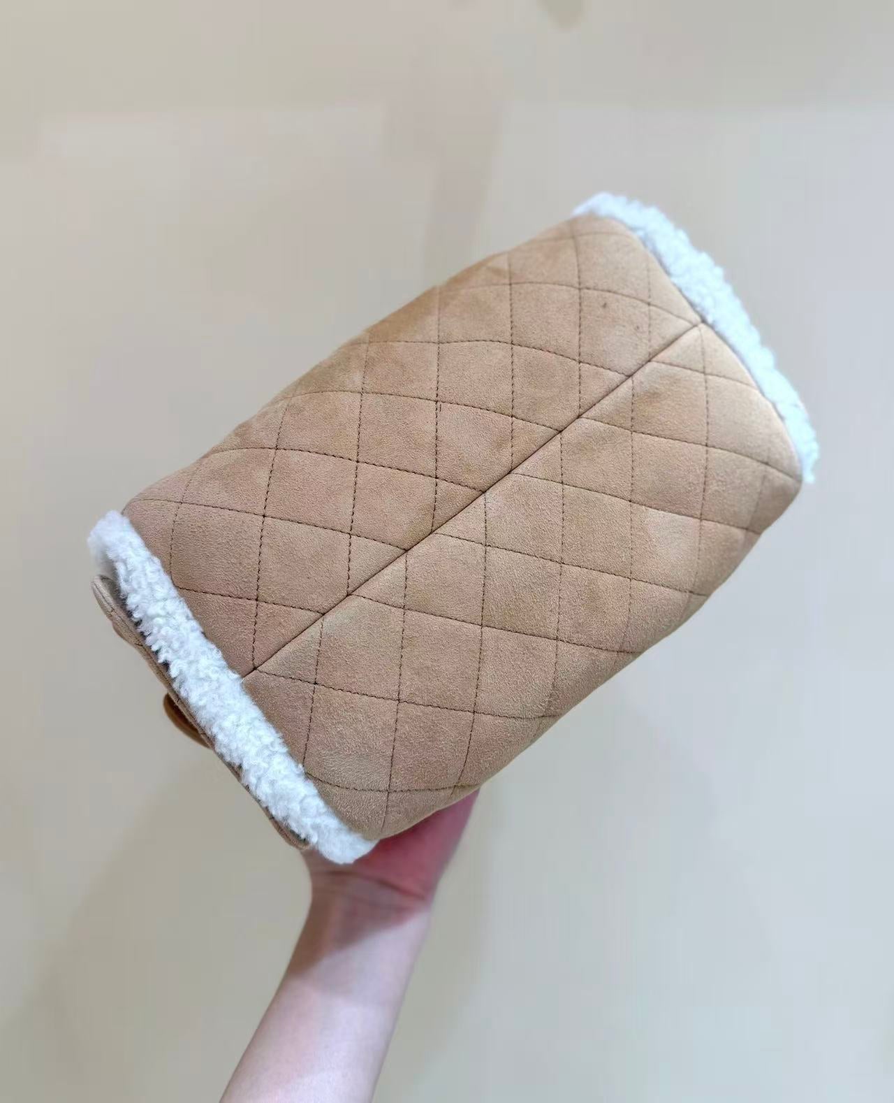 CC 25C Hobo Bag 30cm Brown White Suede Wool Gold Hardware