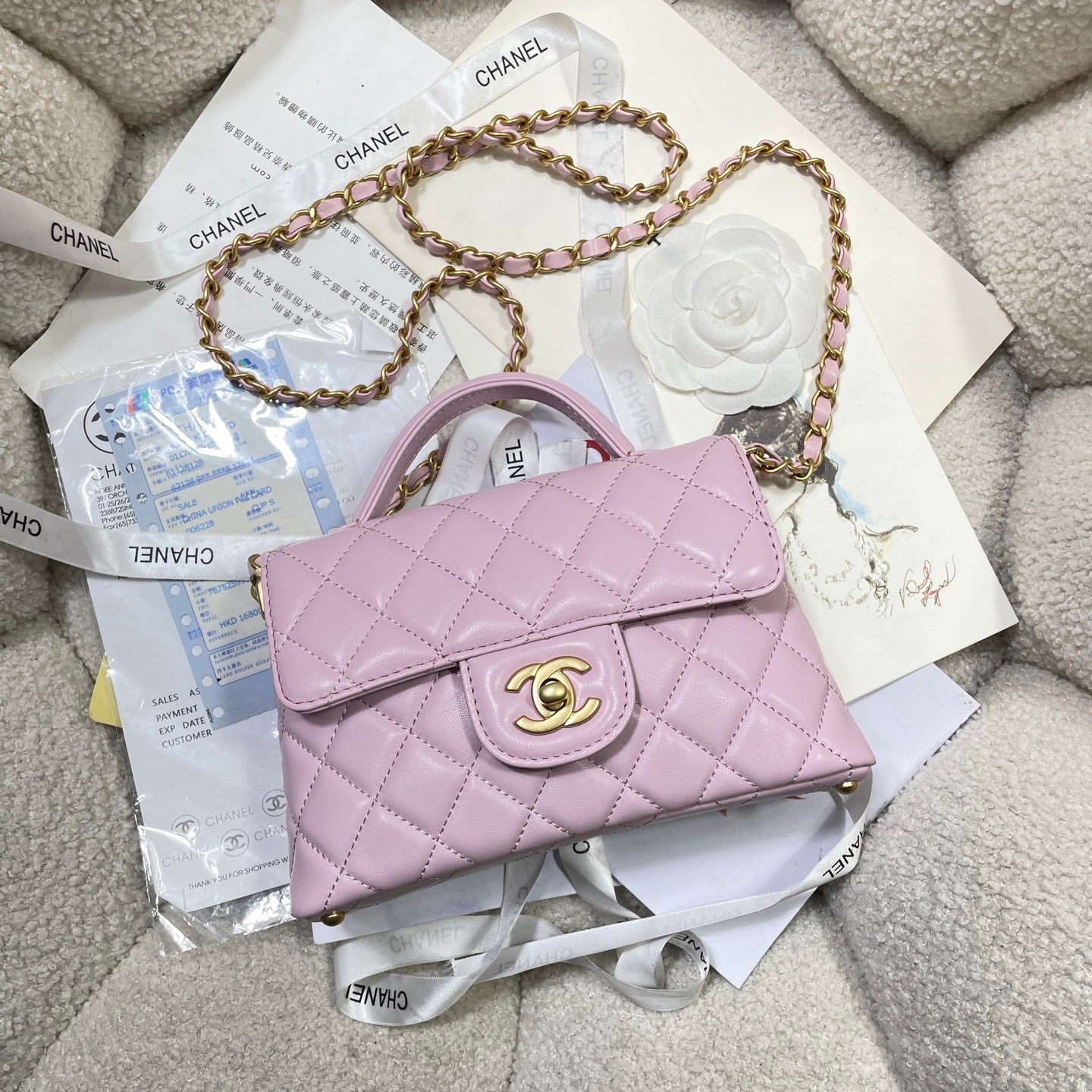 CC 25P Mini Flap Bag 20cm Top Handle Pink Calfskin Gold Hardware