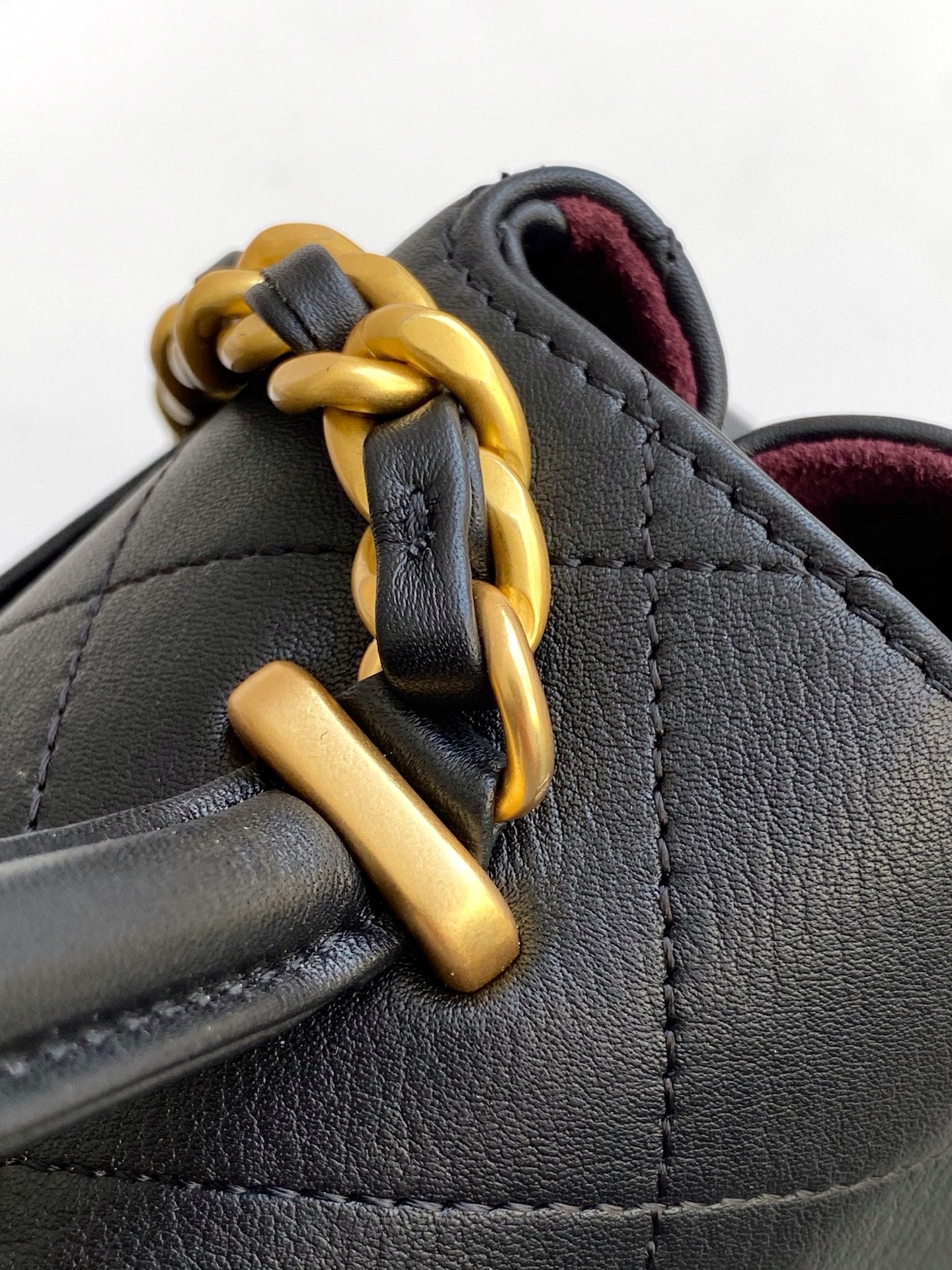 cc 25S Vintage Flap Bag 28cm Top Handle Black Calfskin