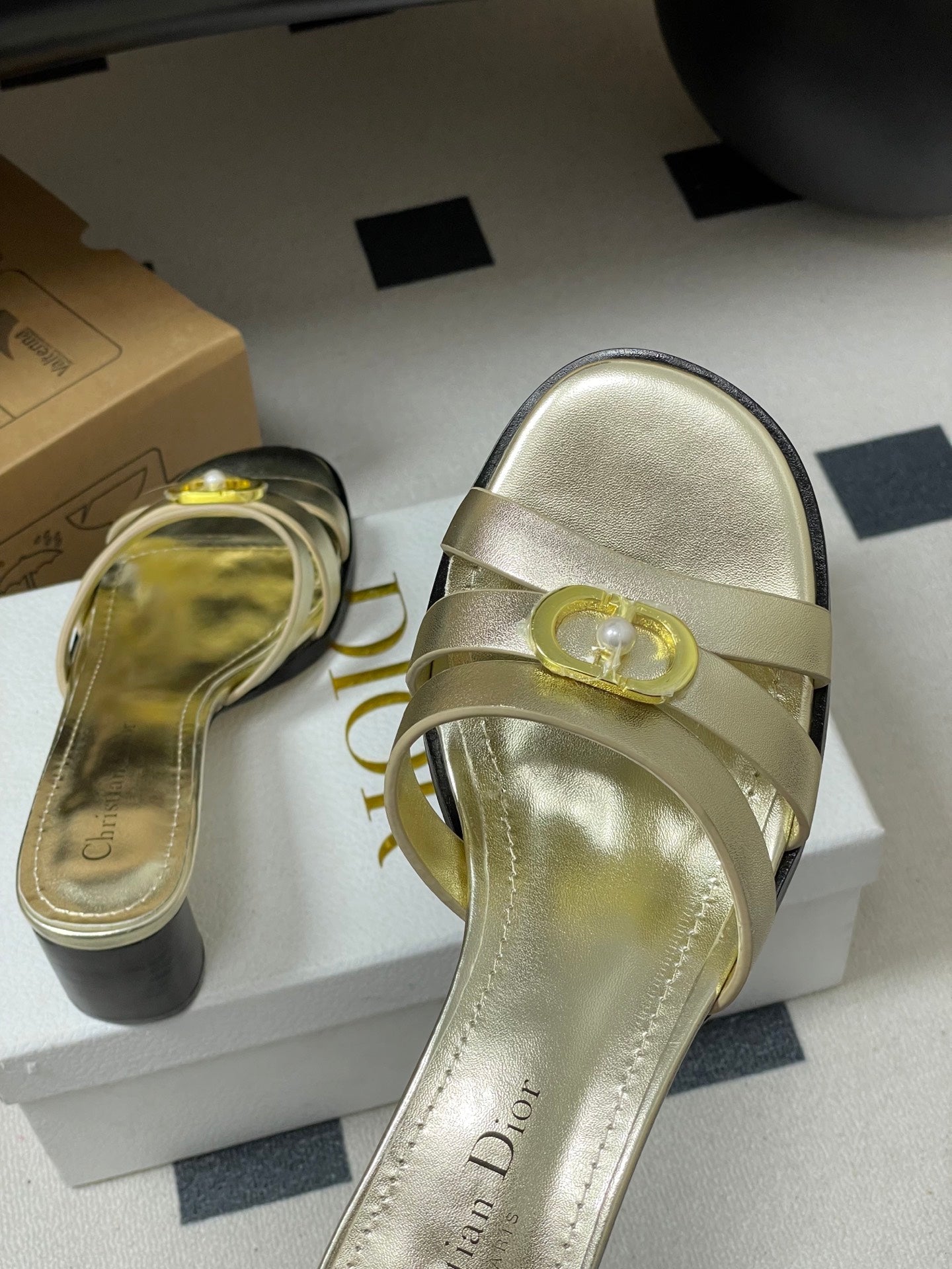 CD 26 Chunky Heel Sandals 50 Metallic Gold Leather 593521