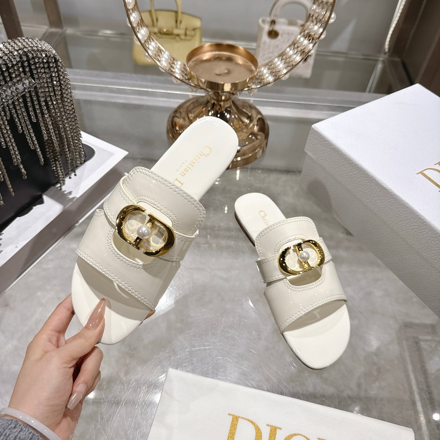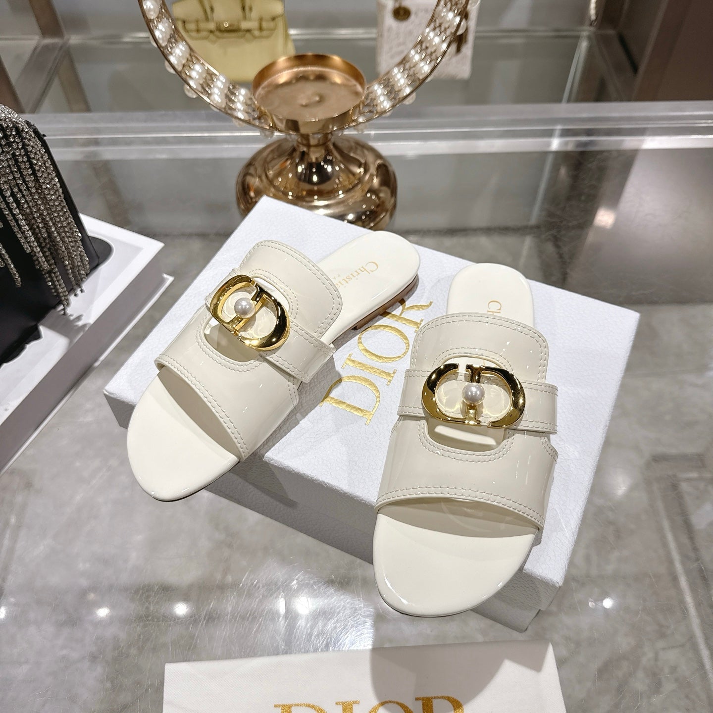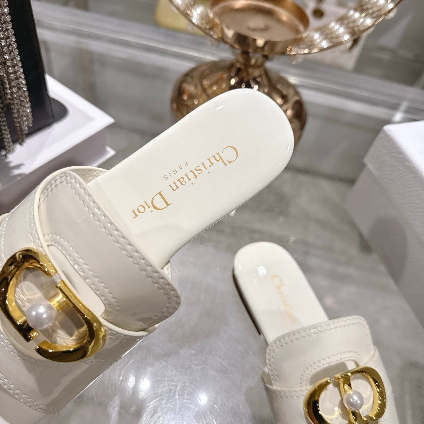 CD 26 Chunky Heel Sandals White Patent Leather 592277