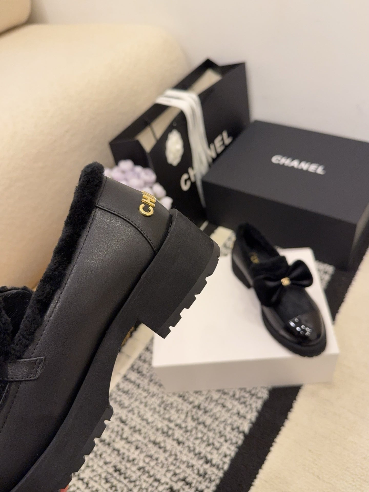 CC 26 Fur-lined Loafer With Bow Black Wool Leather 588823