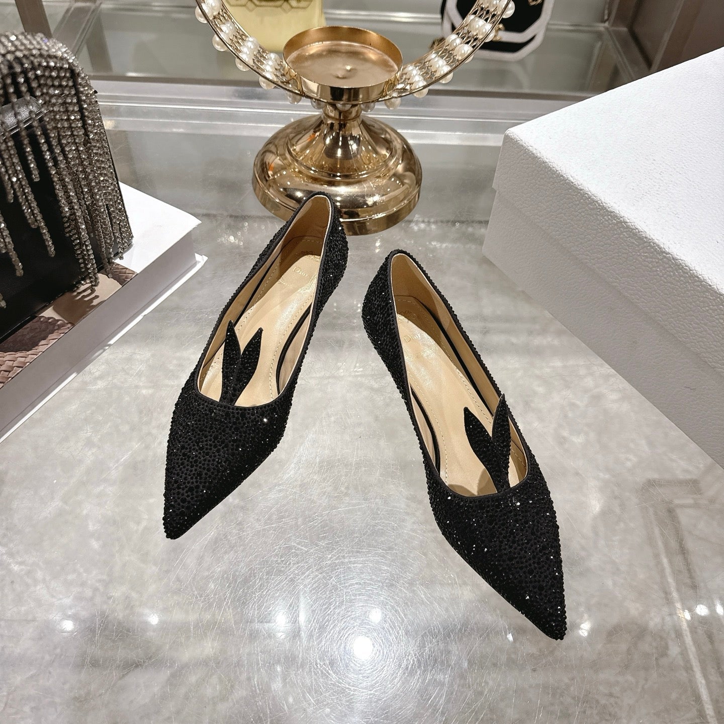 CD 26 Pump 35mm Black Full Diamond Sheepskin 592202