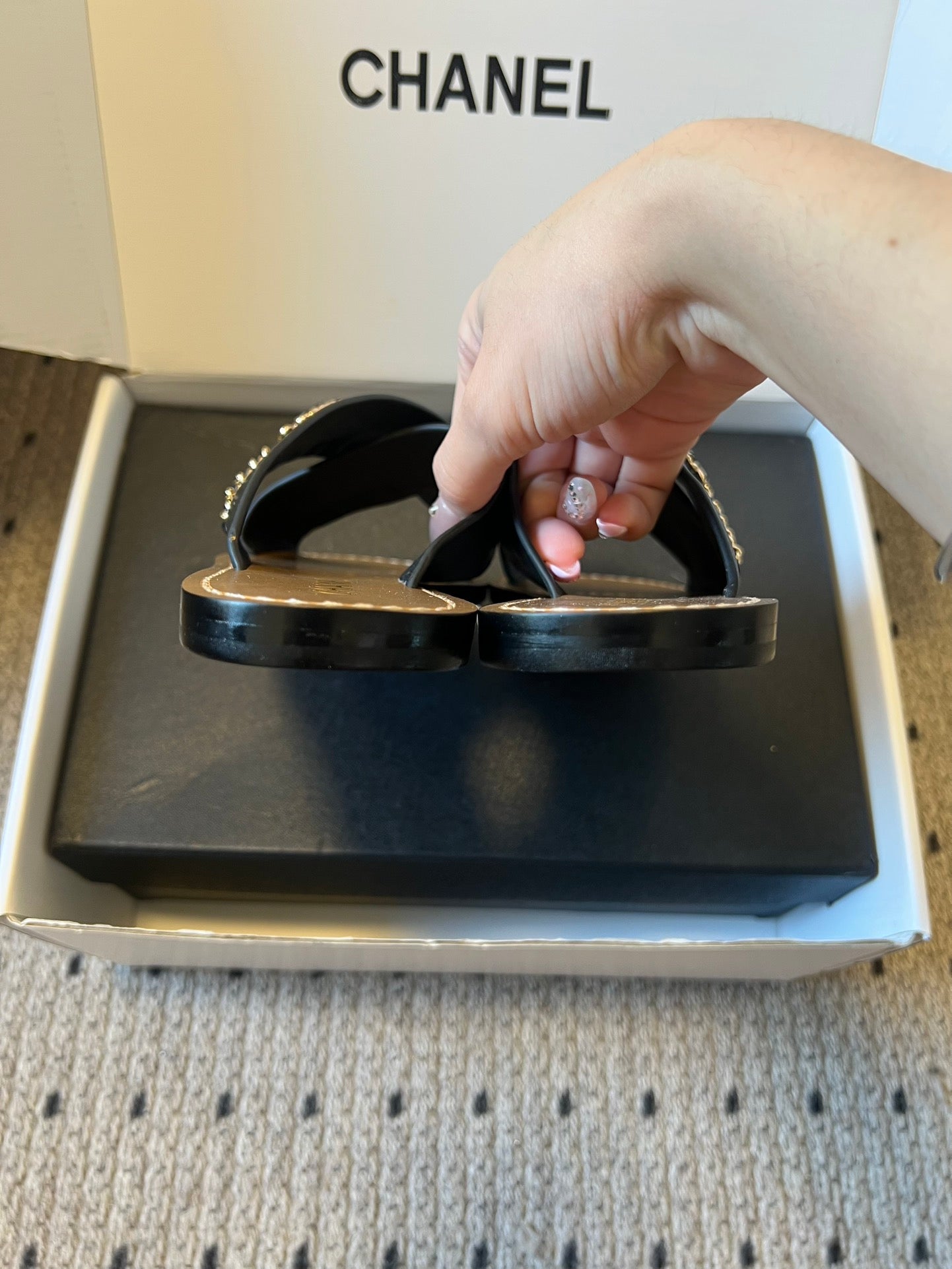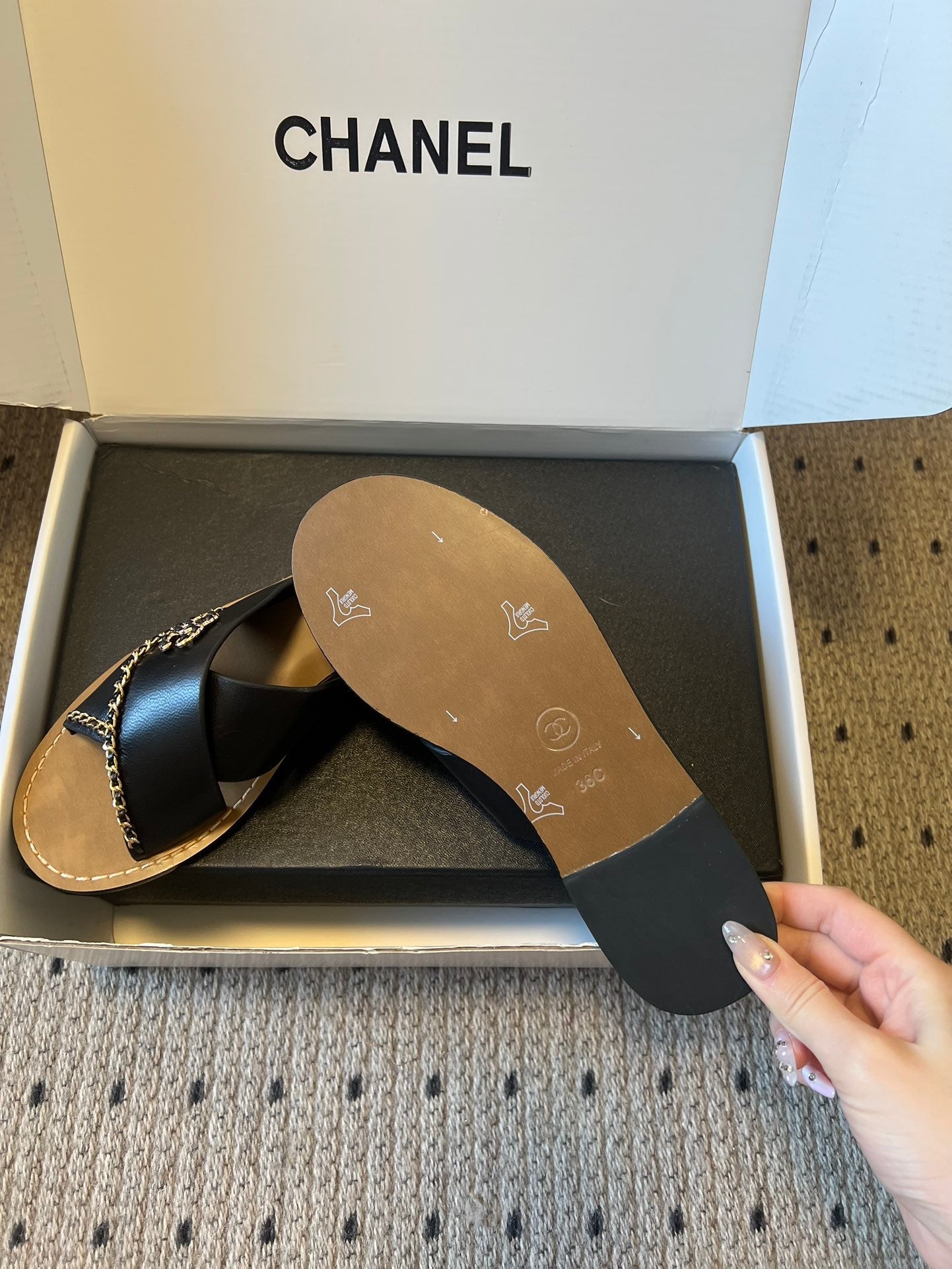 CC 26s Flat Sandals Black Brown Cowhide 627194