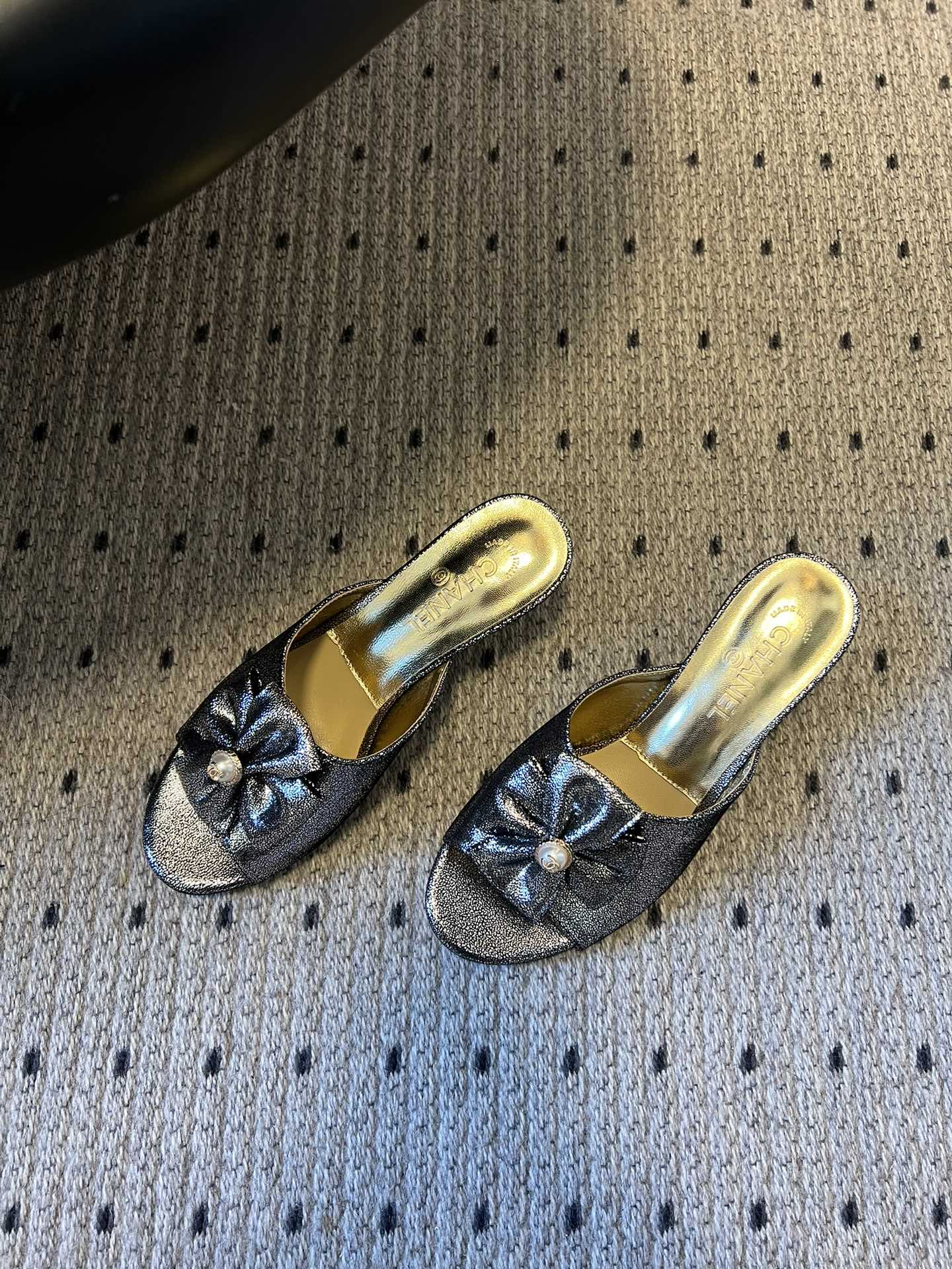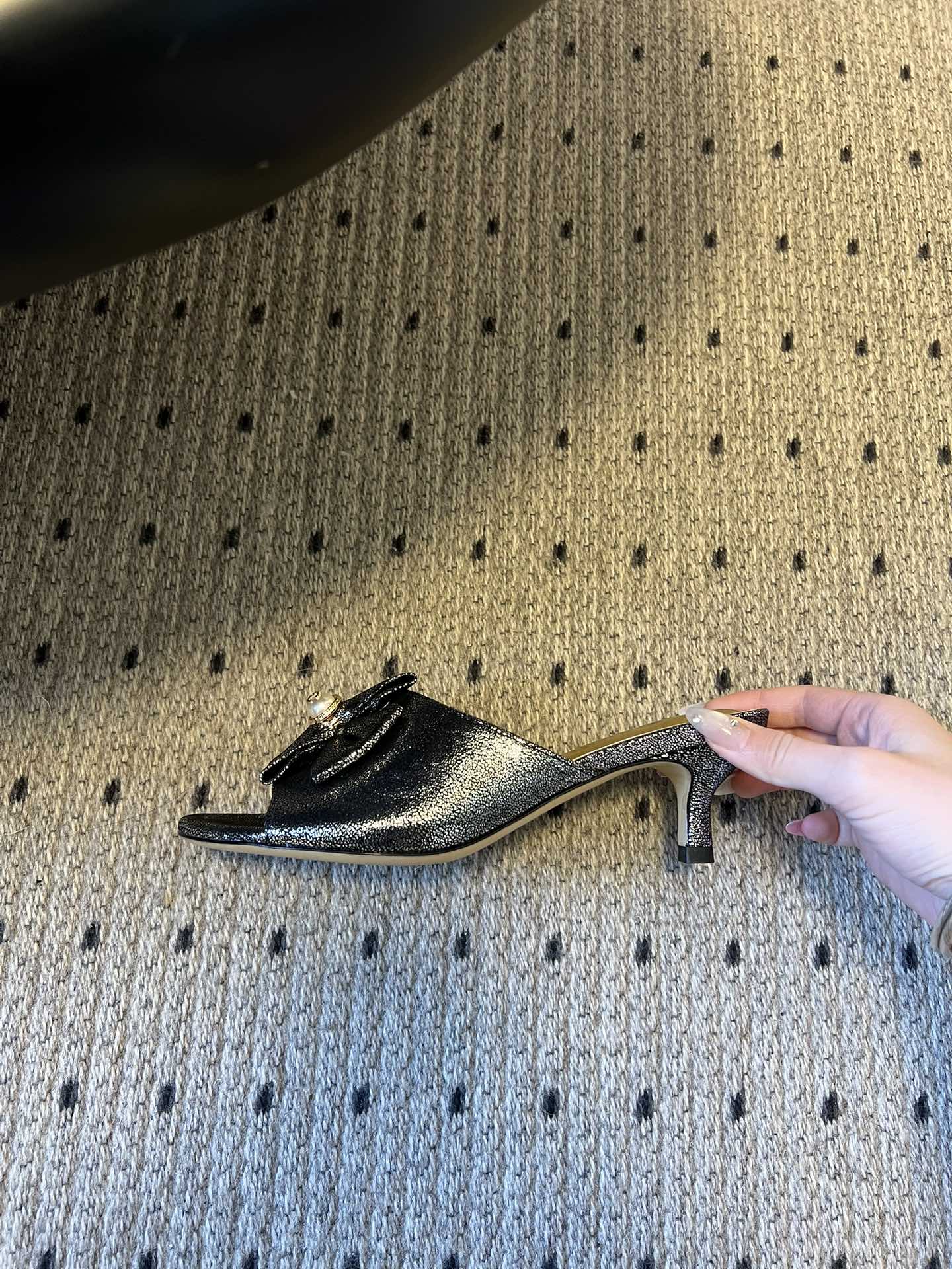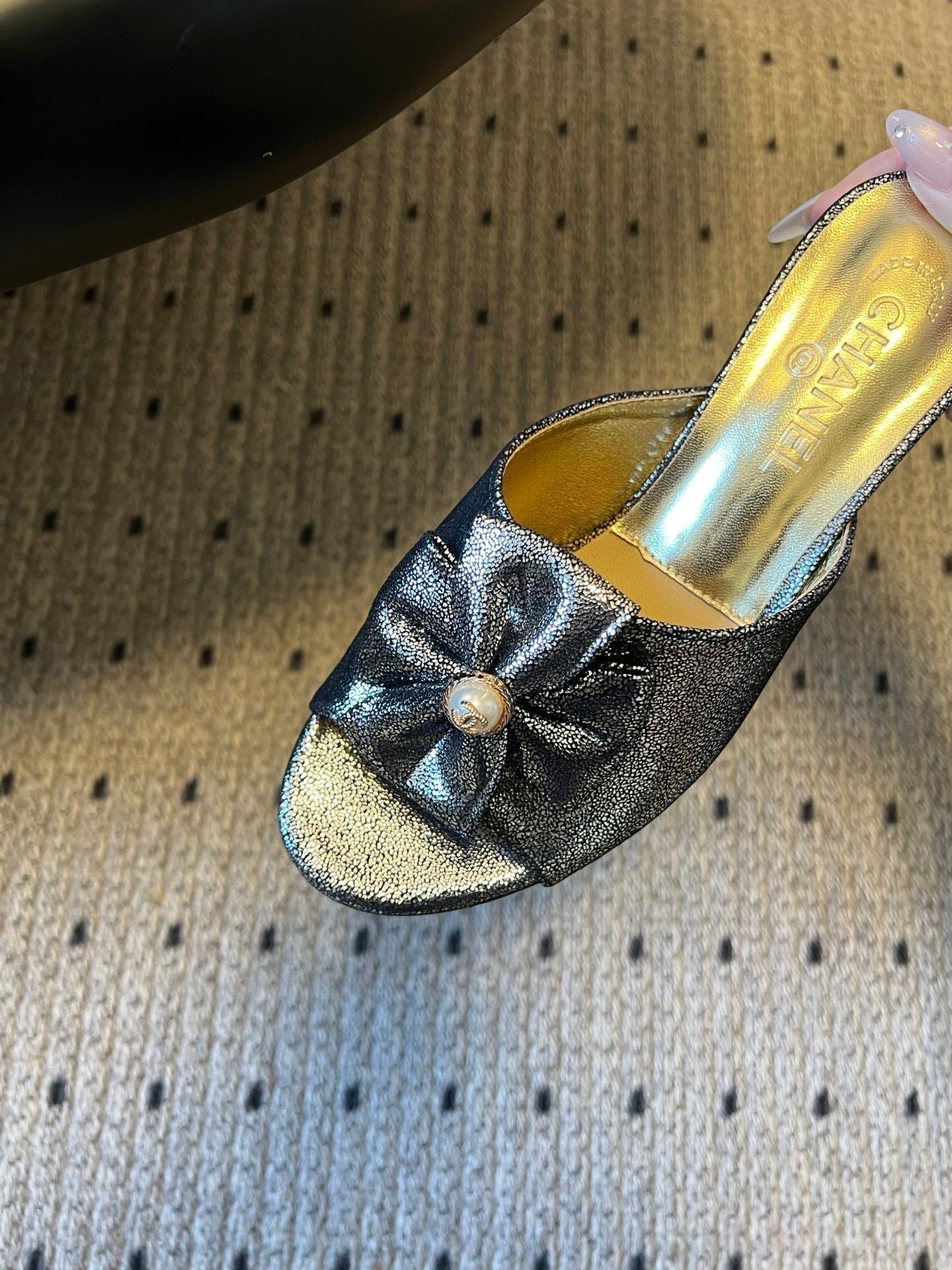 CC 26s High-Heeled Slides 60 Metallic Black Cowhide 627184