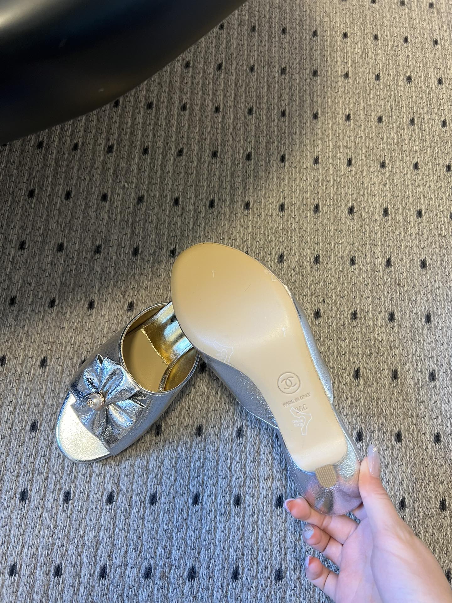CC 26s High-Heeled Slides 60 Metallic Sliver Cowhide 627183