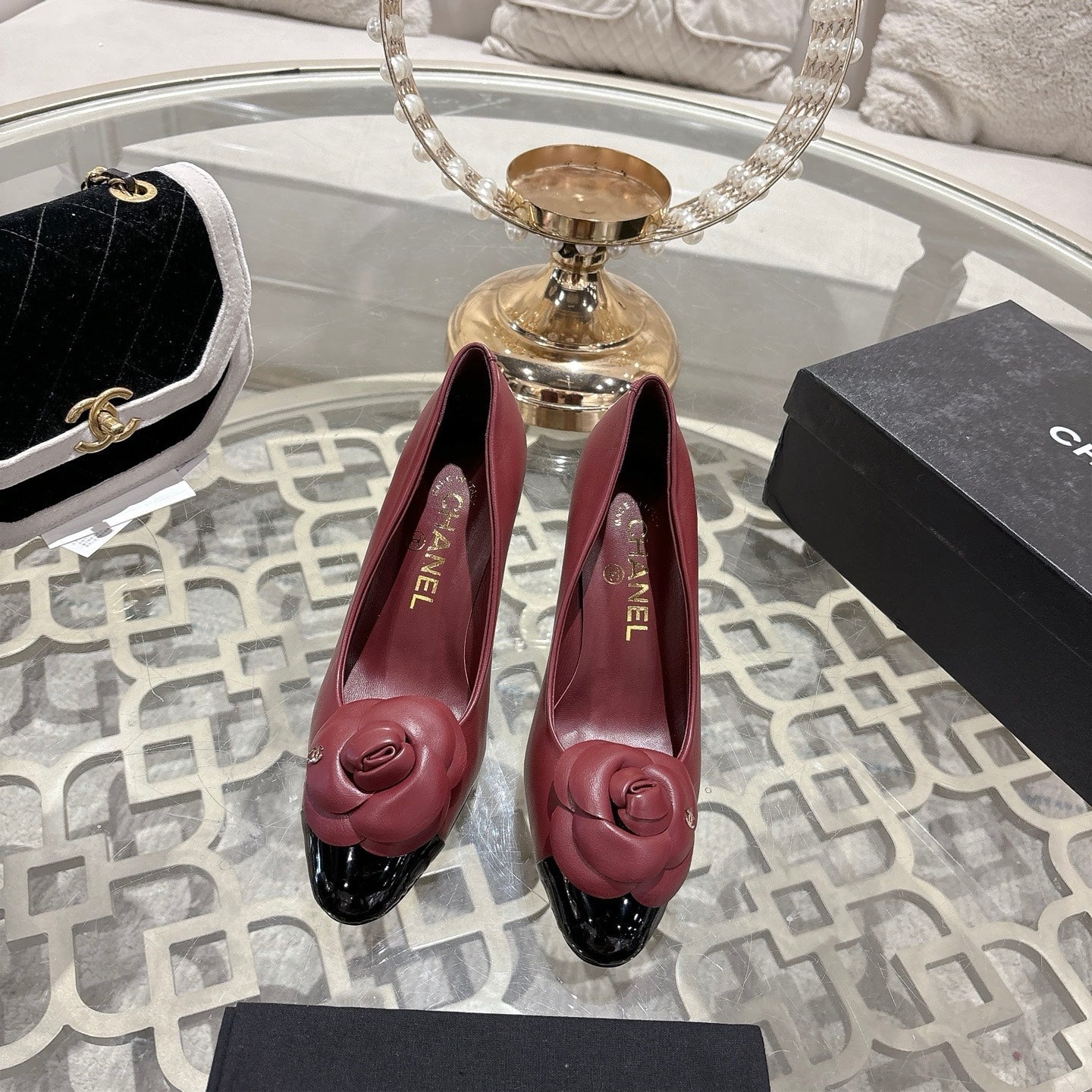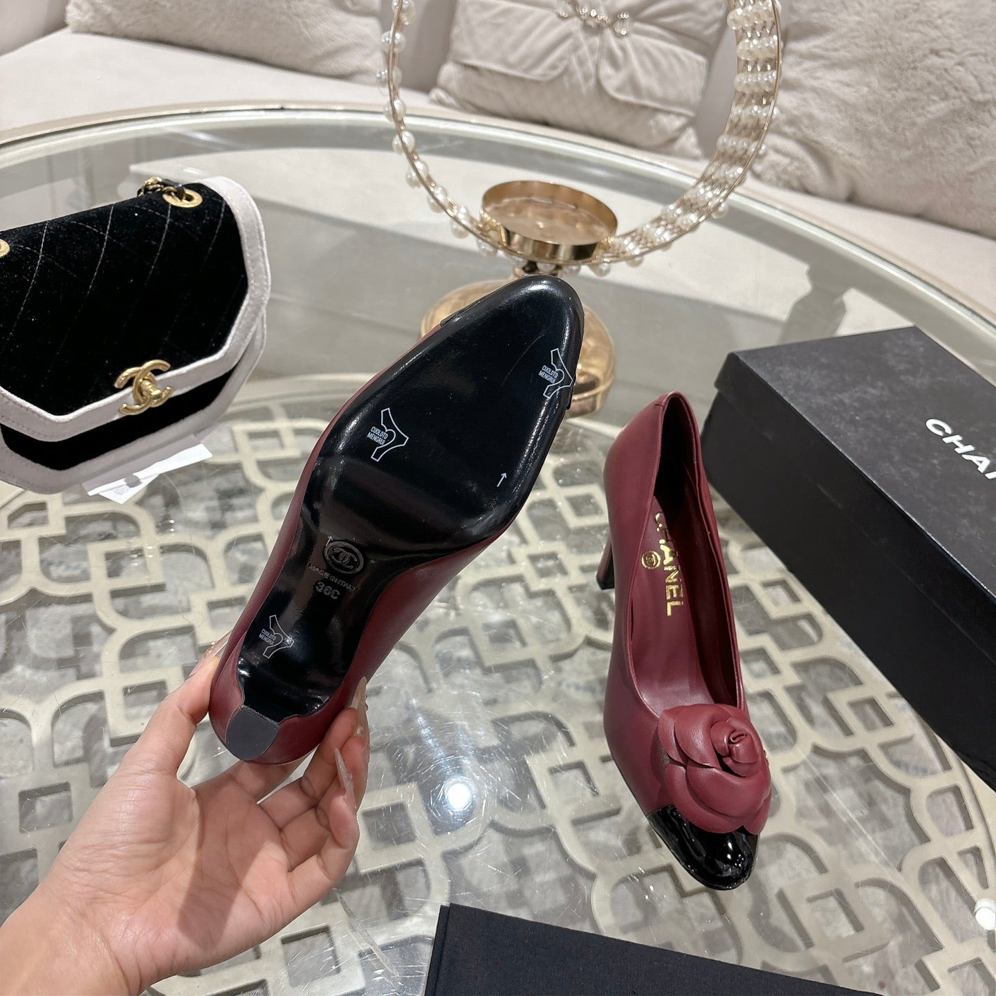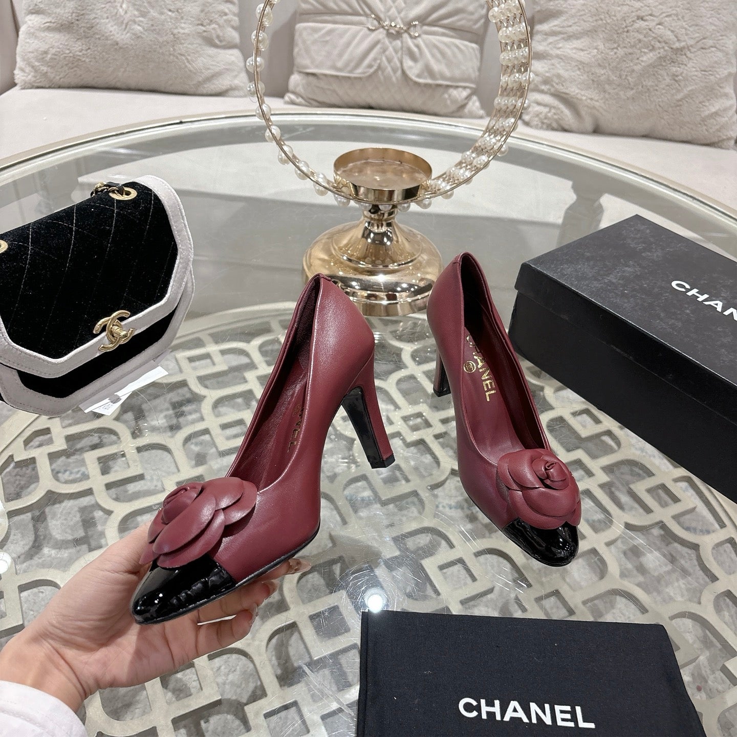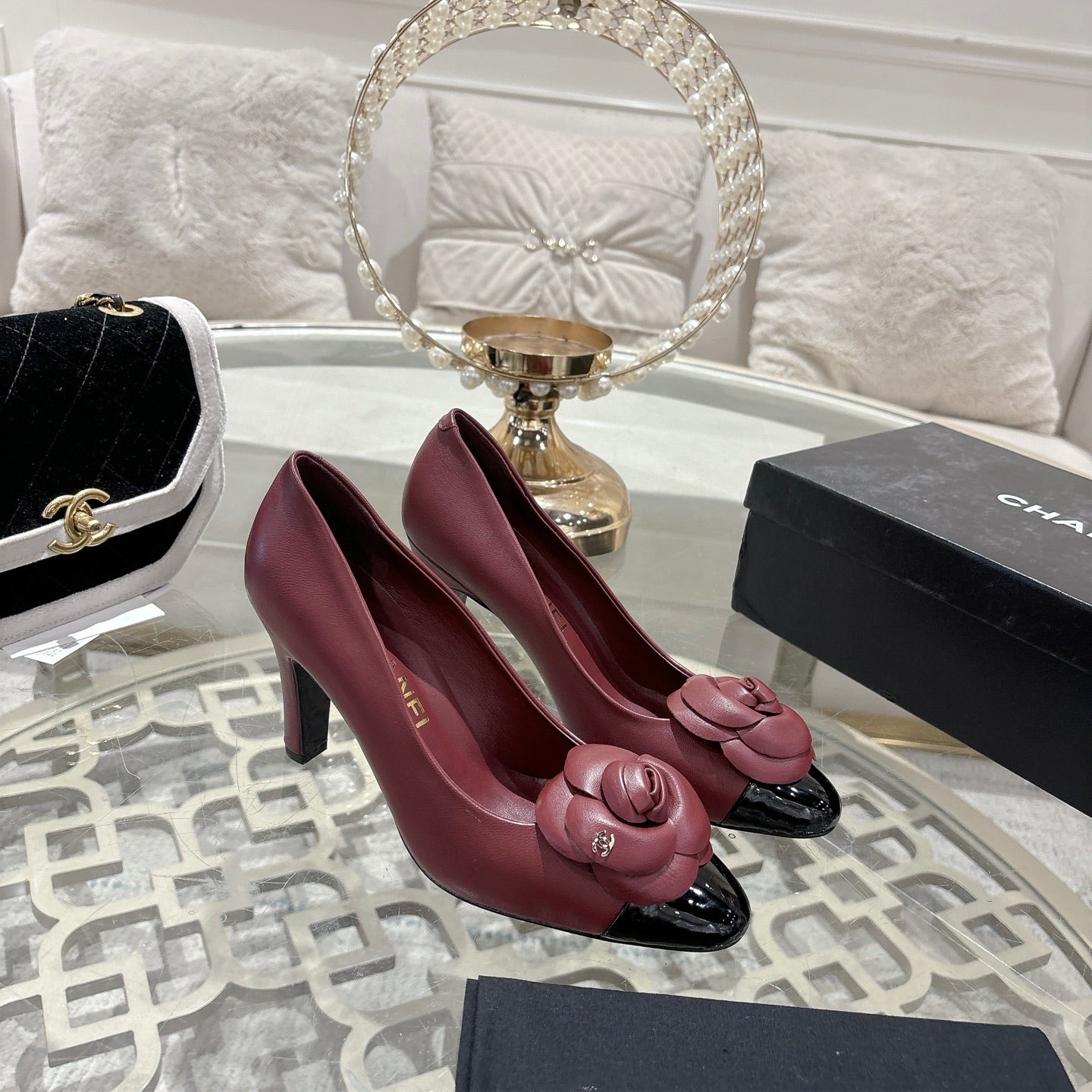 CC 26s High Heels Pump 85 Burgundy Black Sheepskin 627007