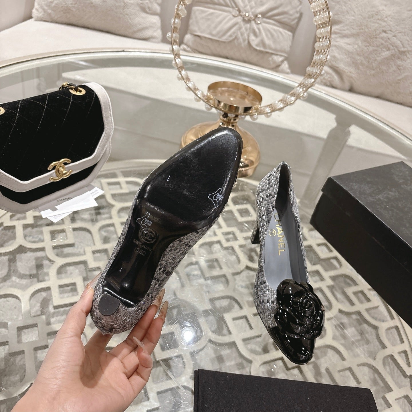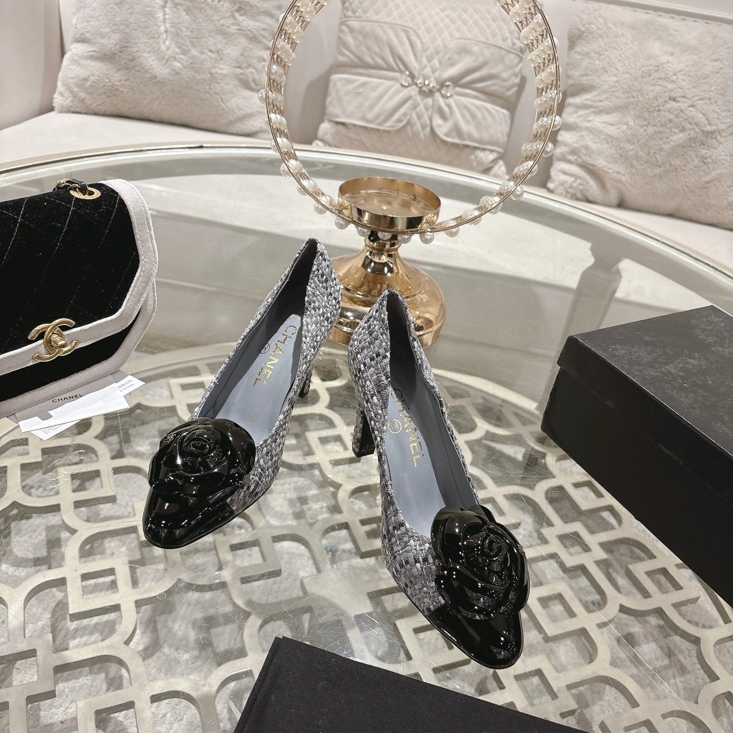 CC 26s High Heels Pump 85 Gray Black Wool Fabric 627016