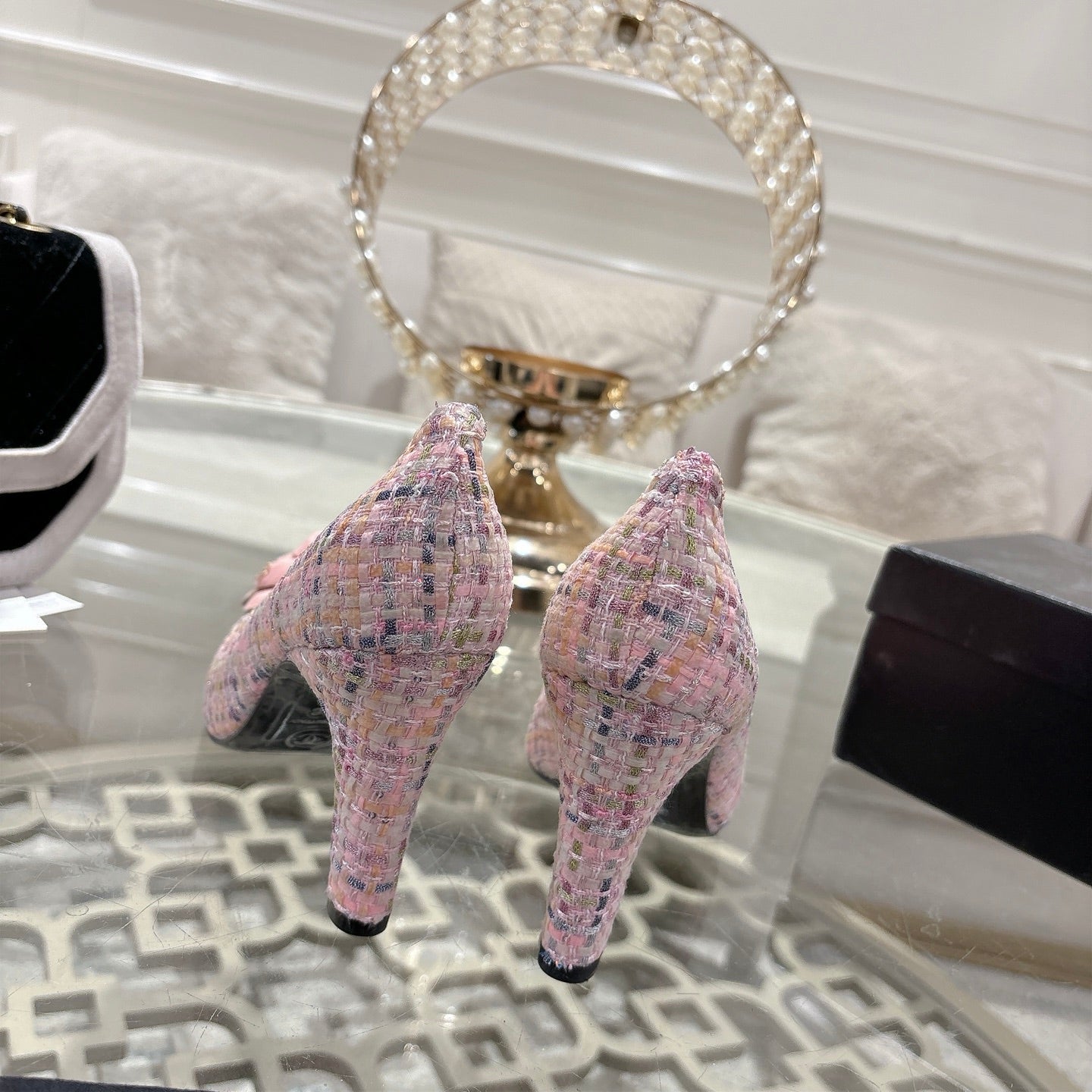 CC 26s High Heels Pump 85 Pink Black Wool Fabric 627017