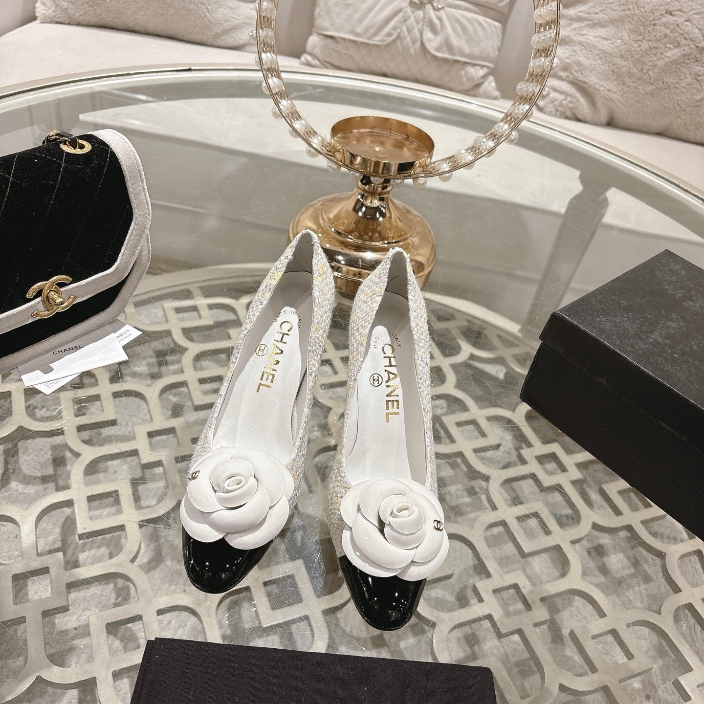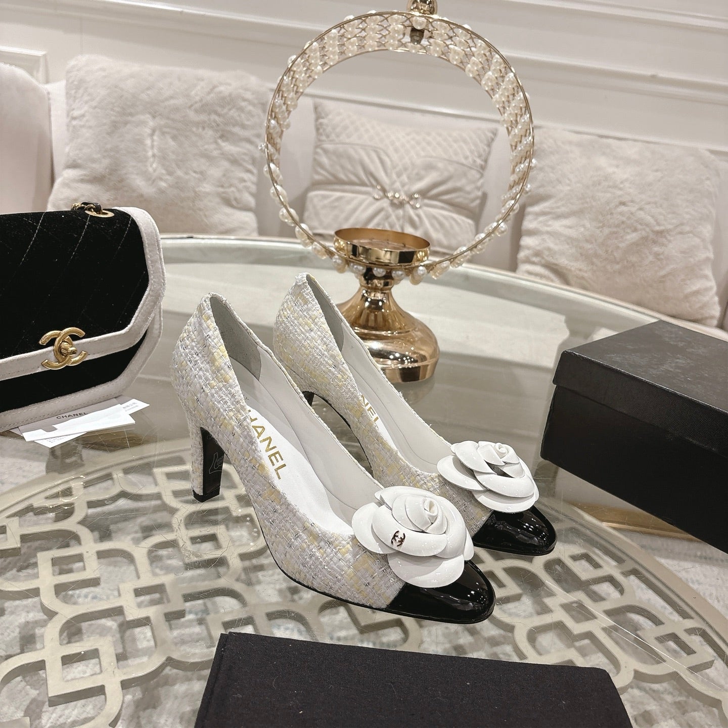 CC 26s High Heels Pump 85 White Black Wool Fabric 627018