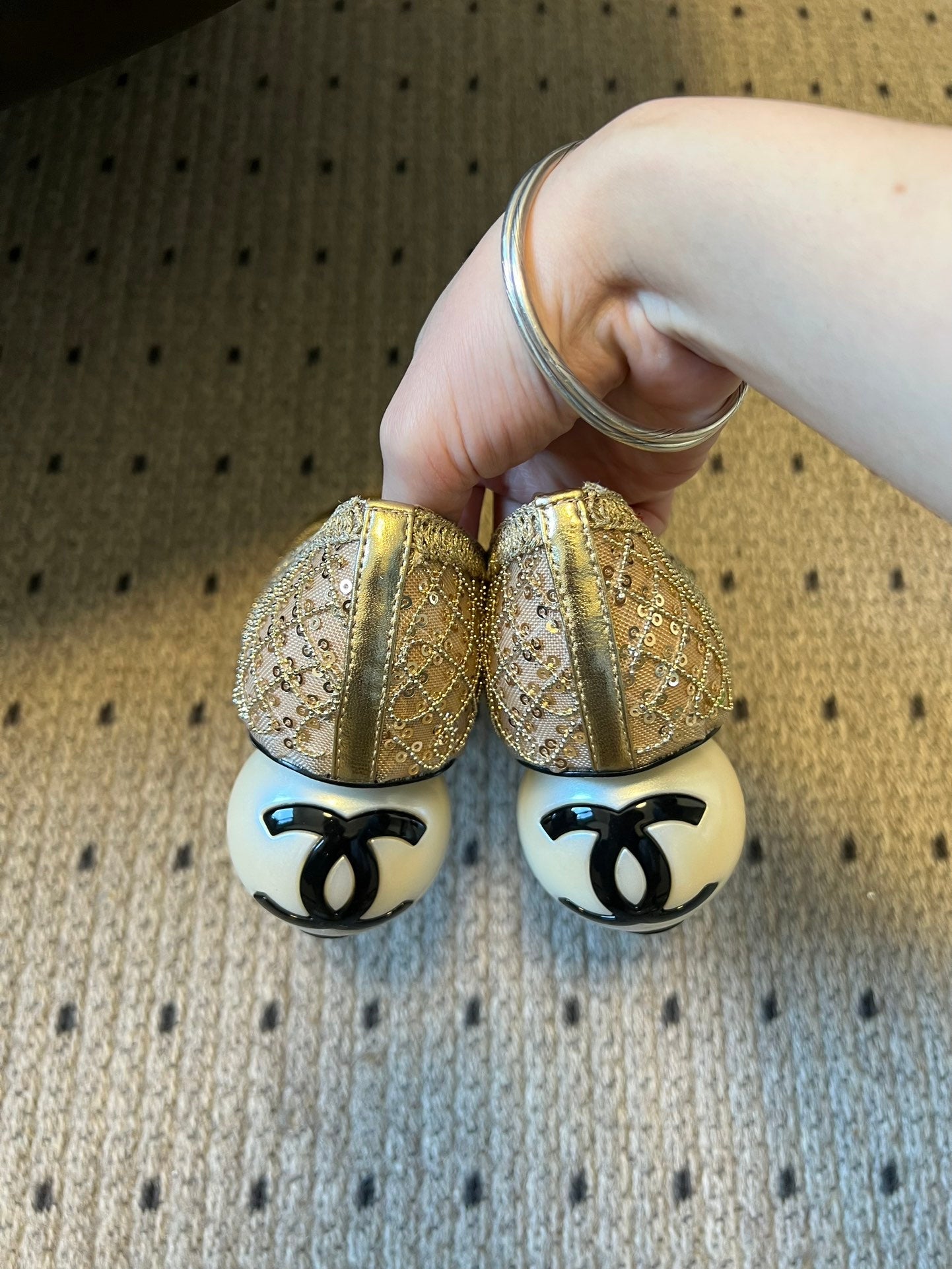 CC 26s High Heels Pump 50 Gold Mesh Leather 627205