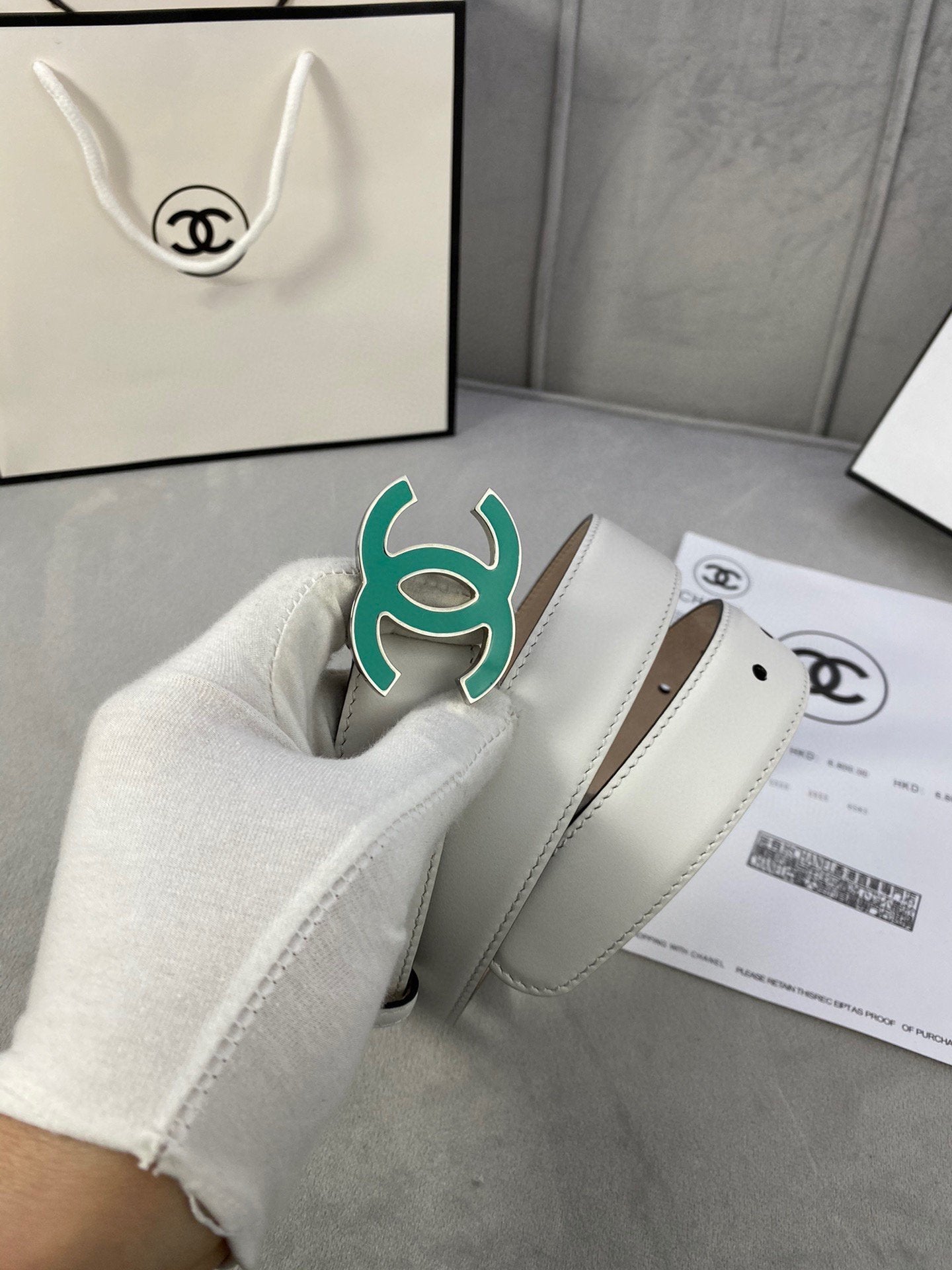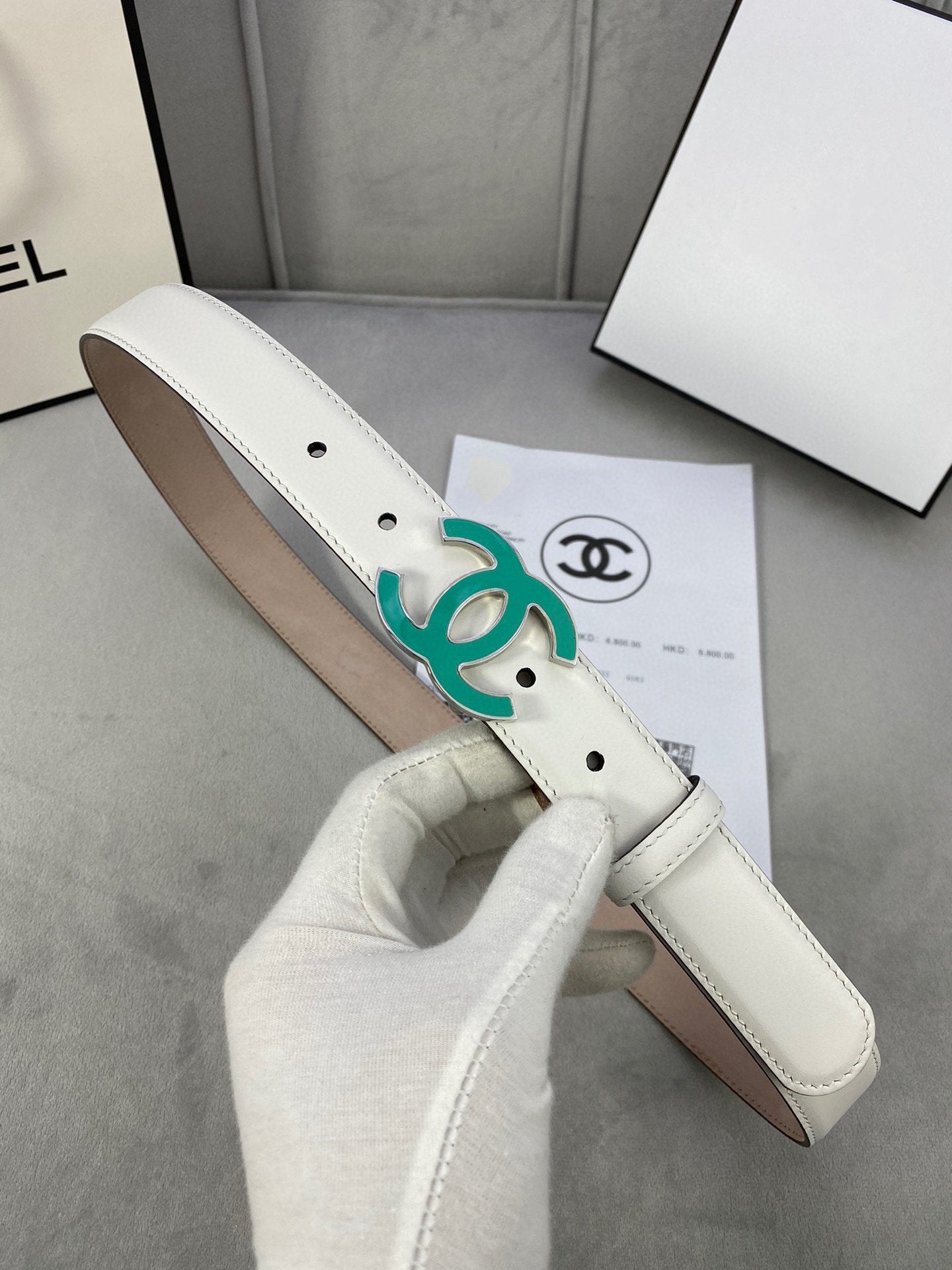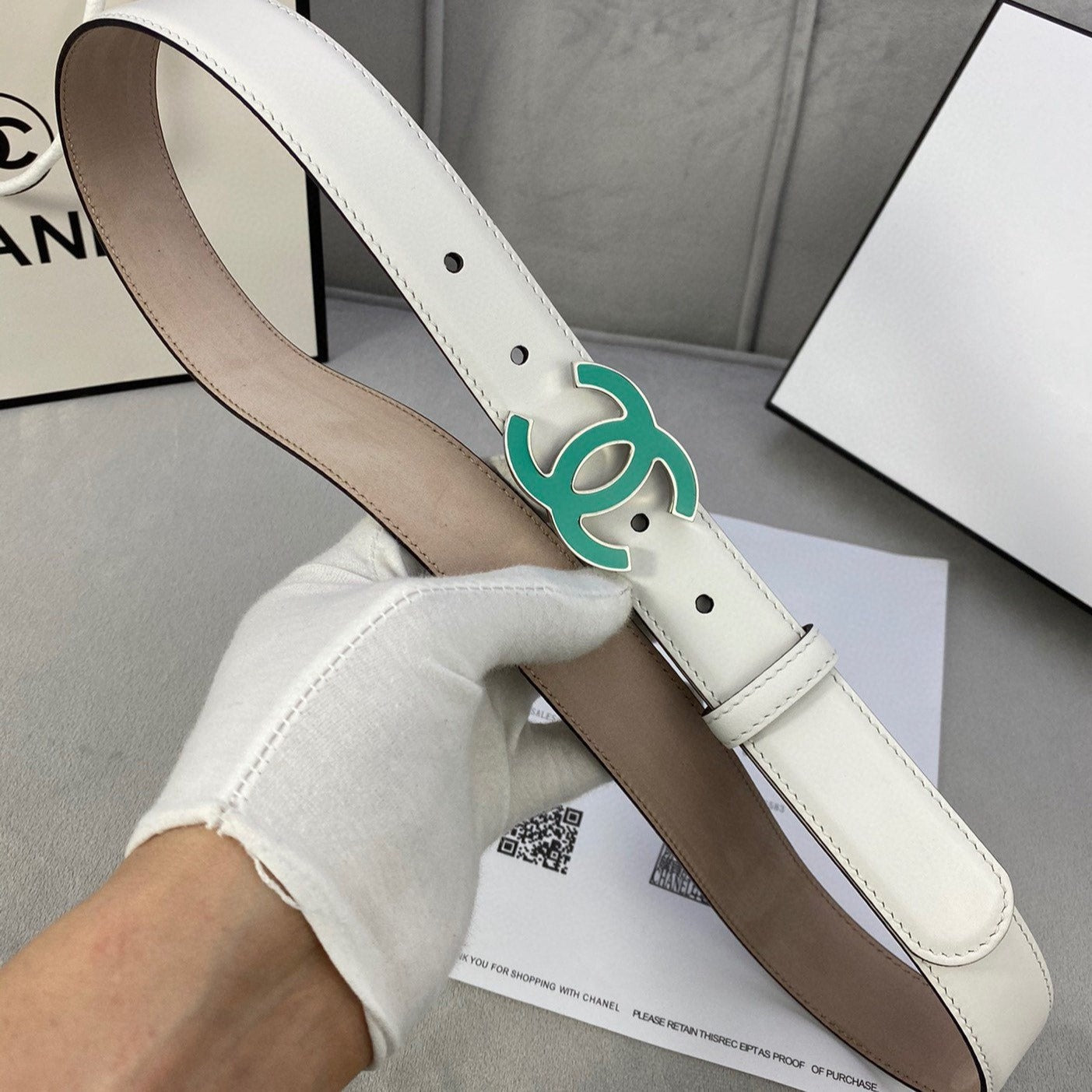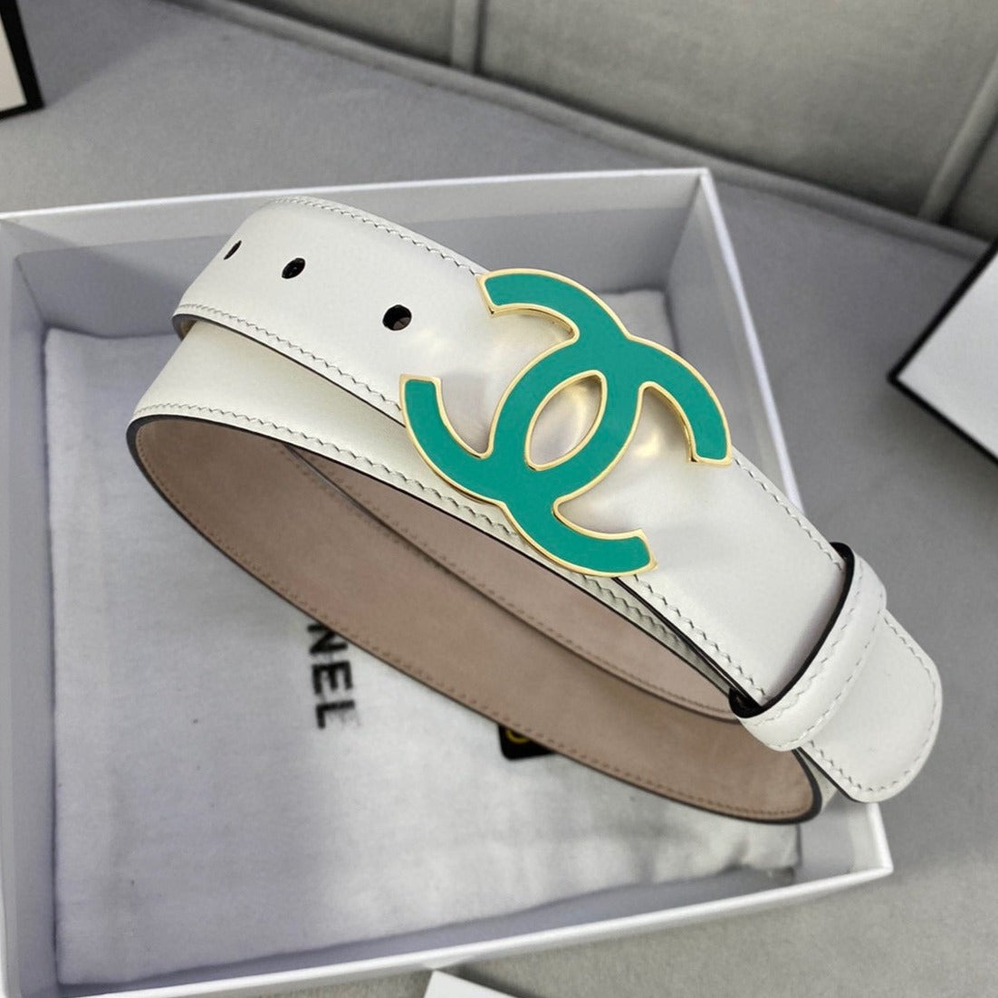 CC BELT 3.0CM BUCKLE BLUE LEATHER WHITE