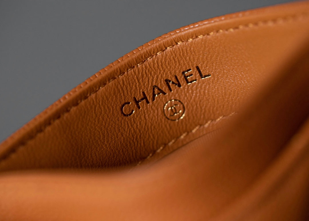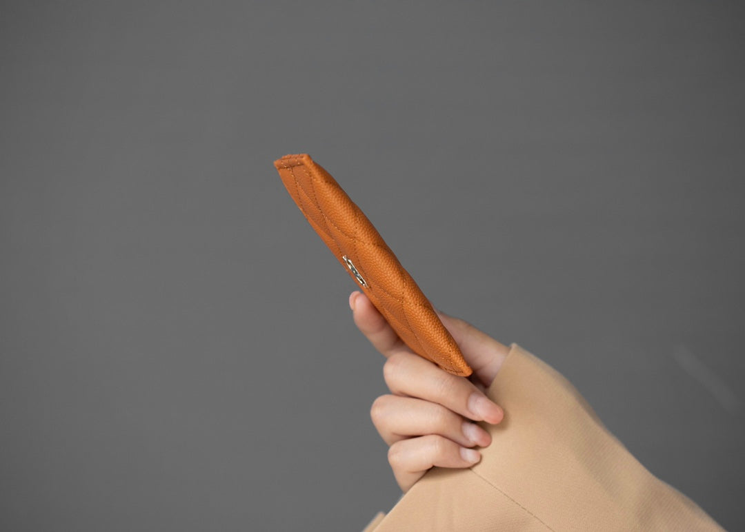 CC CARD HOLDER 11 ORANGE GRAINED CALFSKIN SILVER ICON