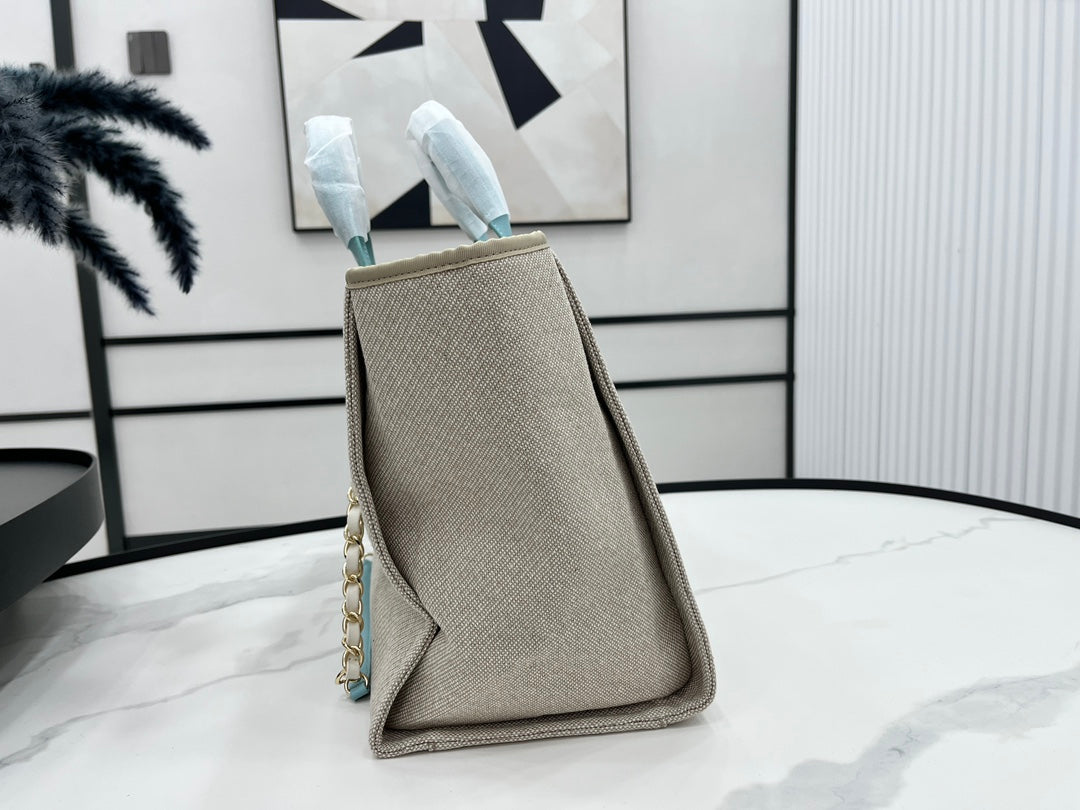 CC Deauville Tweed Bag Blue Sky Leather Gold Hardware 31