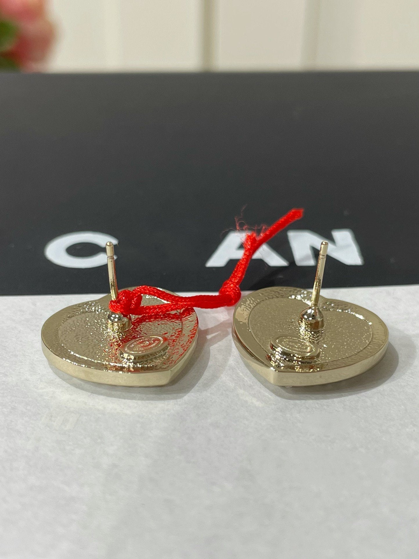 cc diamond paved heart black enamel stud earrings