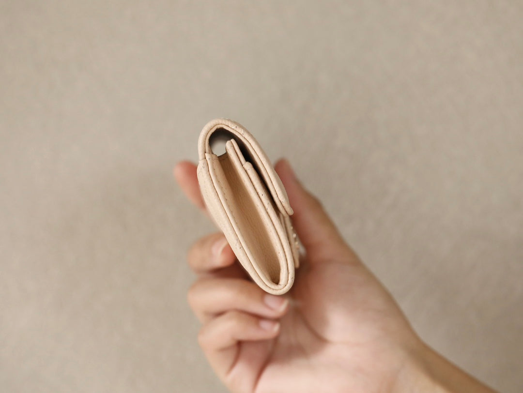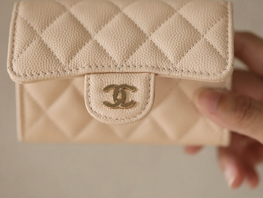 CC FLAP CARD HOLDER 11.3 BEIGE GRAINED CALFSKIN GOLD ICON