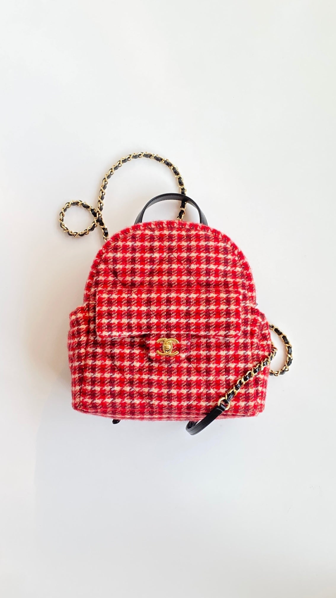 CC Houndstooth Backpack 28 Red Wool Tweed