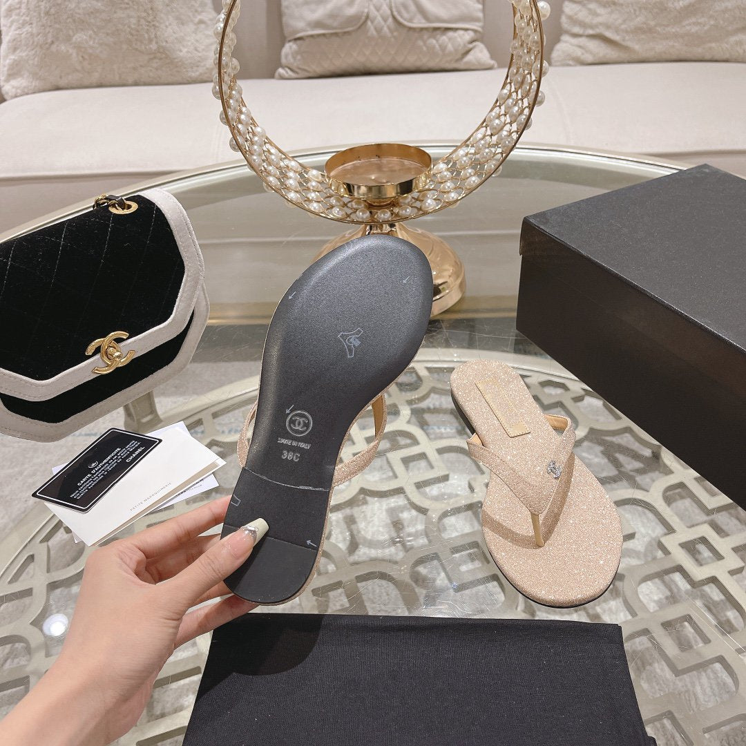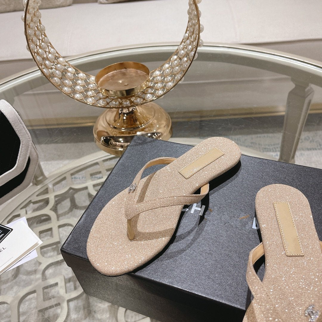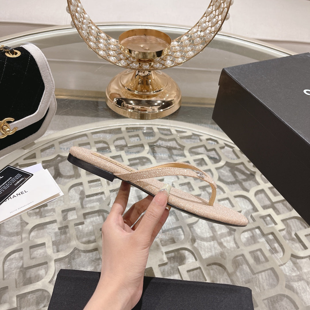 cc thongs beige silver cotton silk