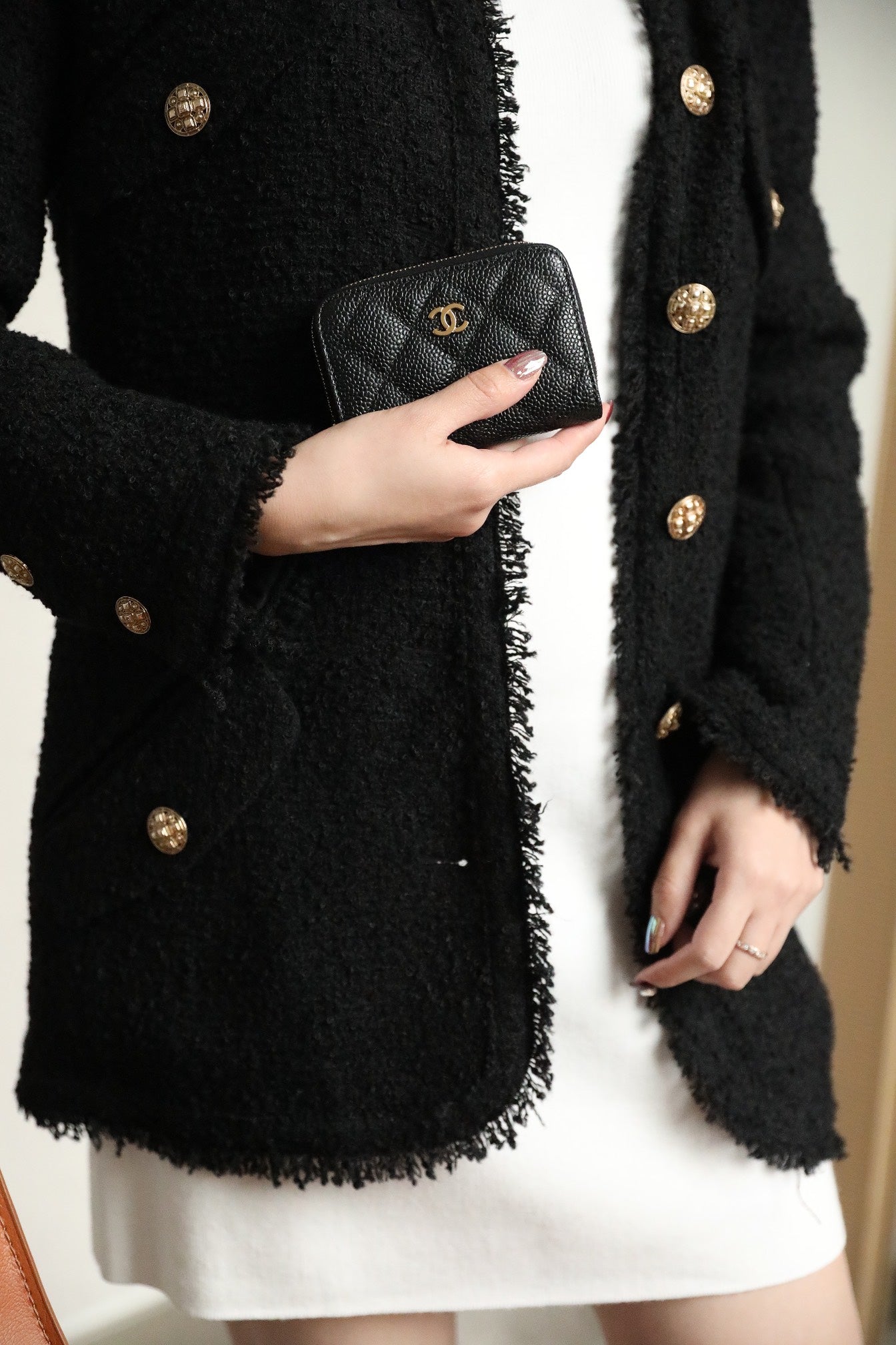 CC ZIPPED COIN BASIC PURSE 11 BLACK CALFSKIN GOLD ICON