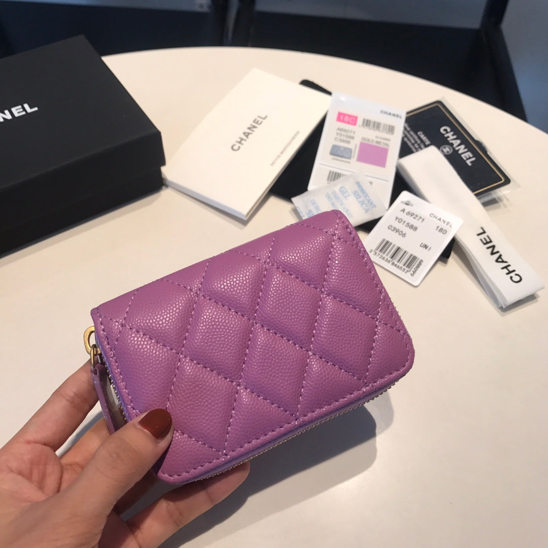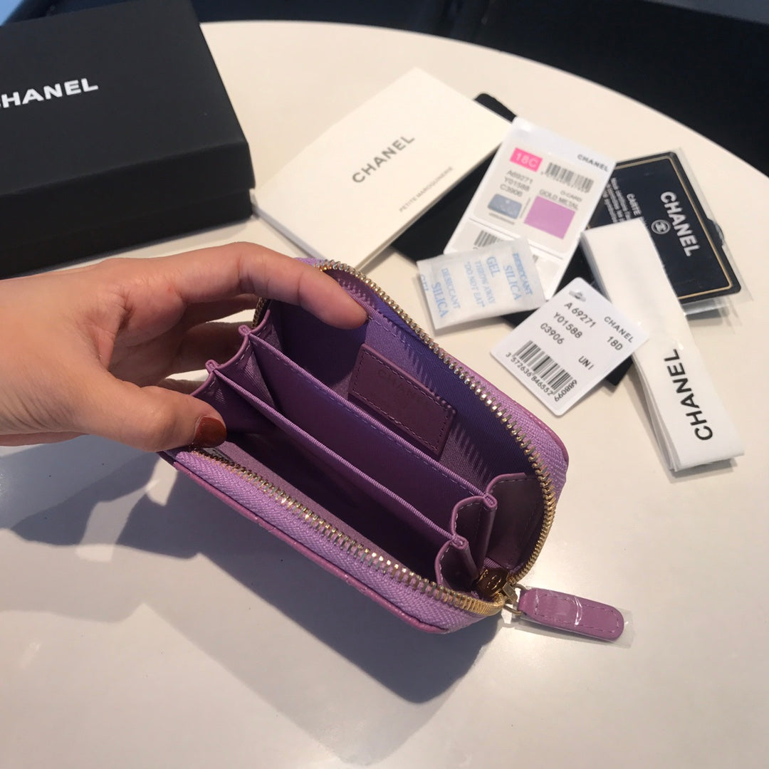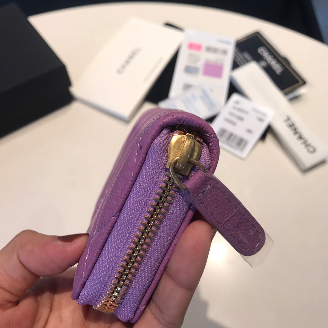 CC ZIPPED COIN BASIC PURSE 11 PURPLE CALFSKIN GOLD ICON