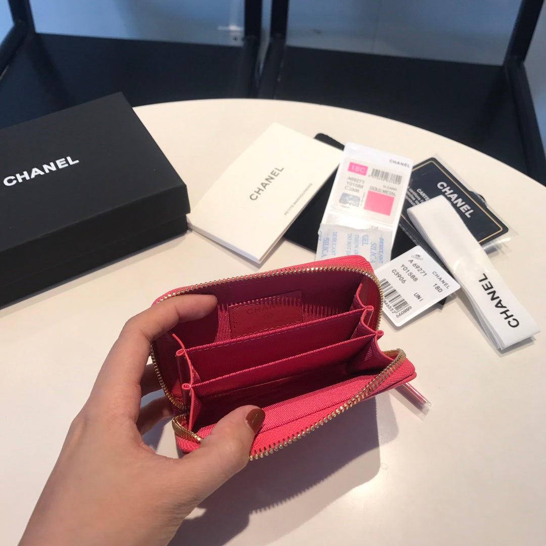 CC ZIPPED COIN BASIC PURSE 11 RED PINK CALFSKIN GOLD ICON