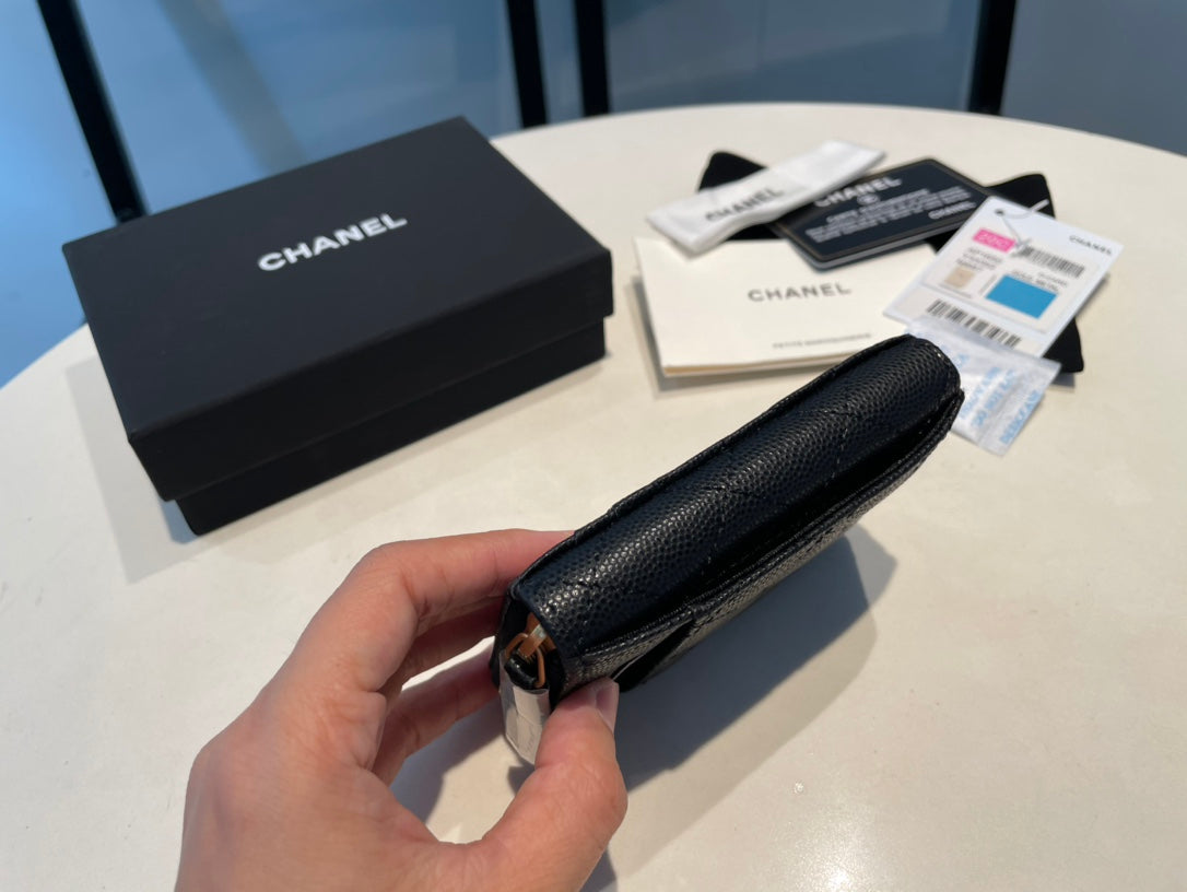 CC ZIPPED COIN PURSE 11 BLACK GRAINED CALFSKIN