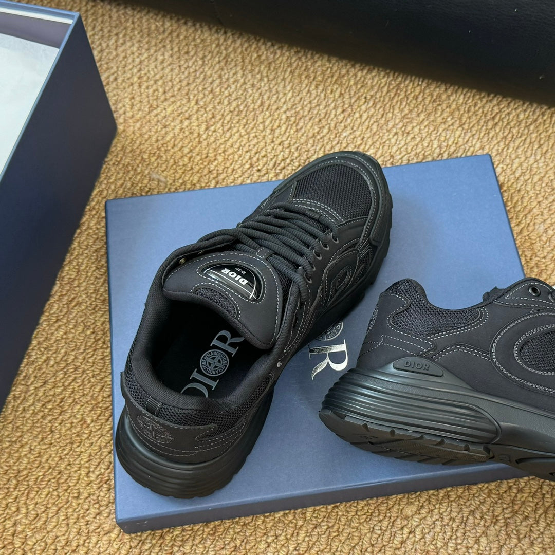 CD And Stone Island B30 Sneaker Black Cowhide And Polyester Mesh Fabric