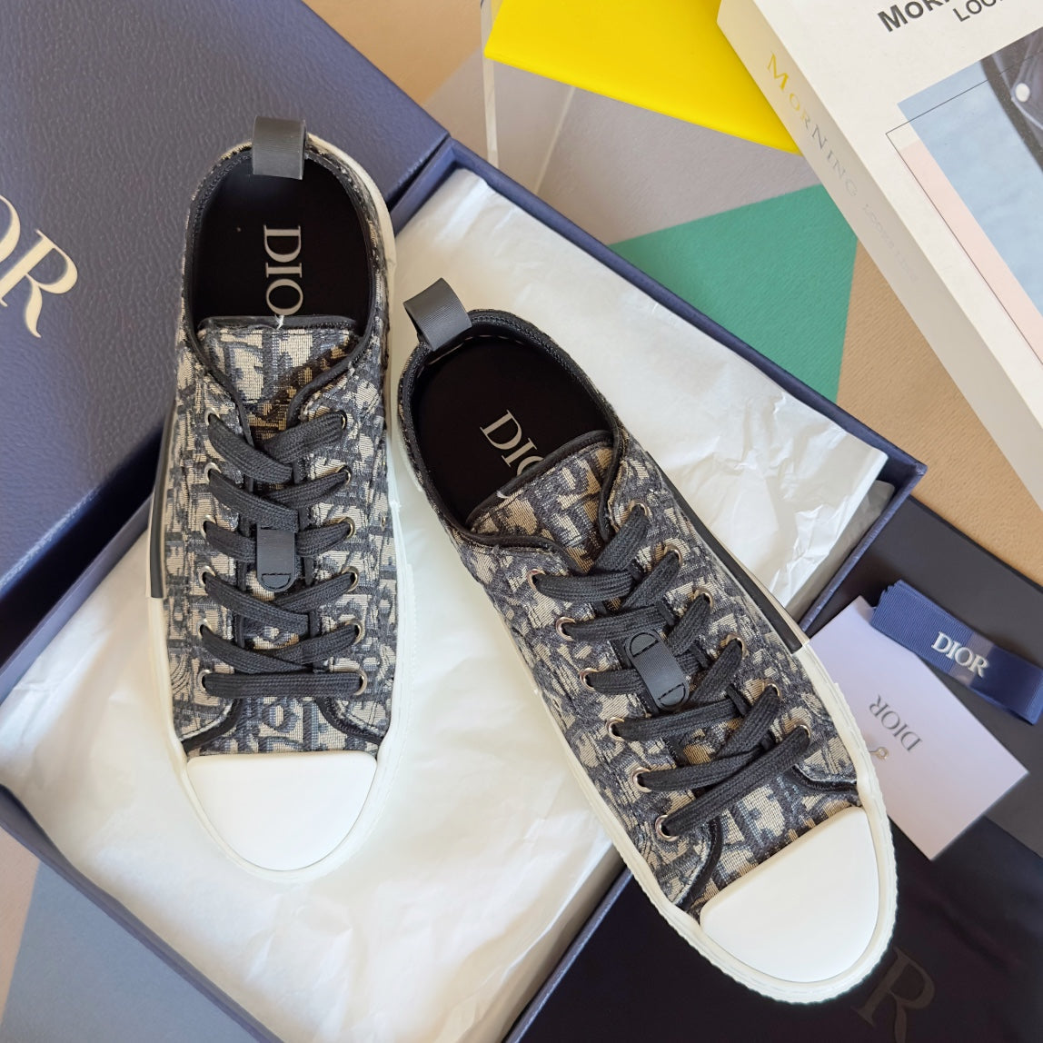 CD B23 Low-Top Sneaker 35mm White Black Oblique Jacquard Fabric