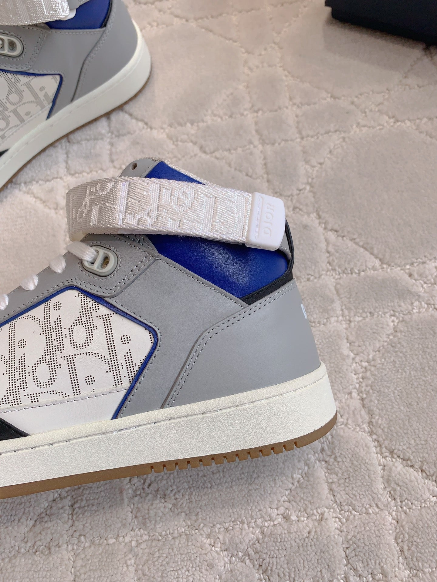 CD B27 High-Top Sneaker White Grey And Red Blue Print Calfskin