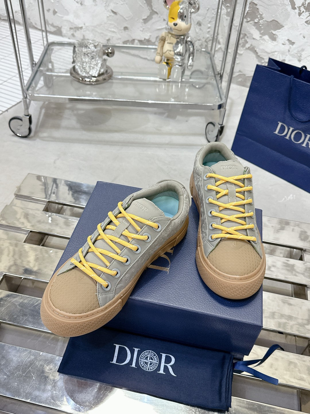 CD B33 Sneaker 40mm In Grey Mix Brown Monogram Satin Embroidery Fabric 103984