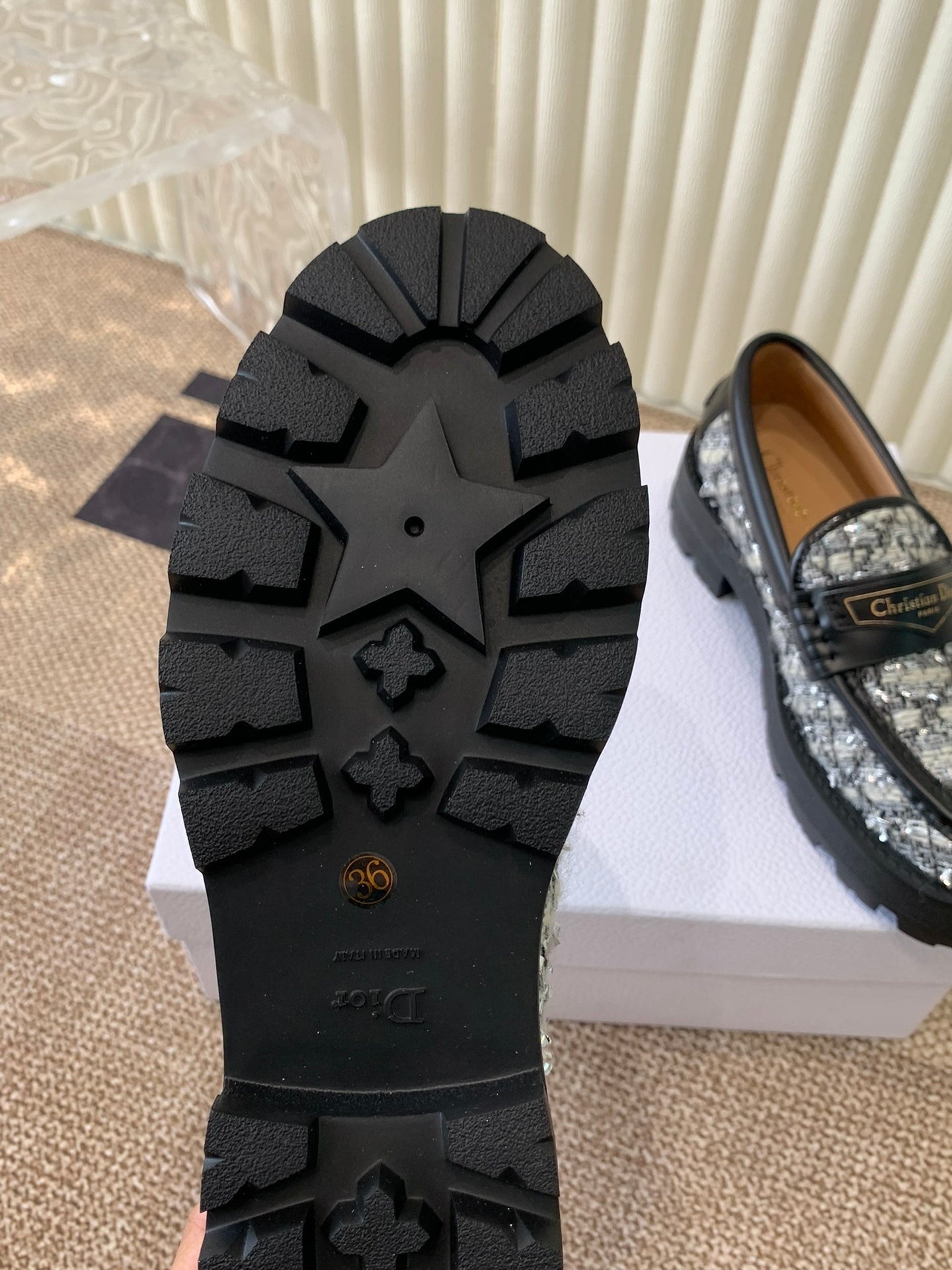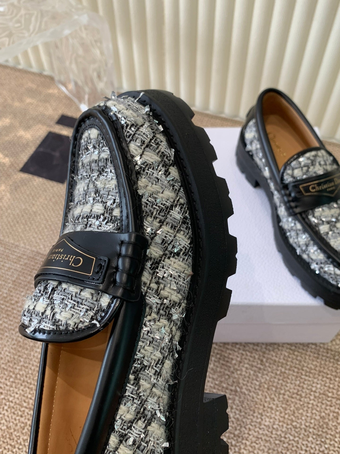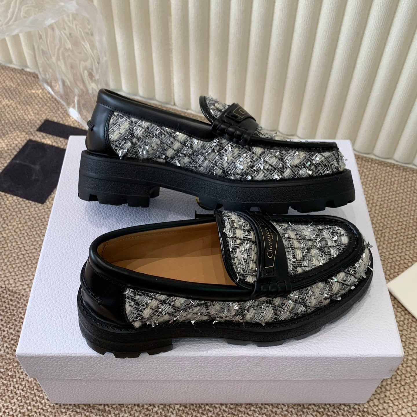 CD Boy Platform Loafer In Black Mix White Tweed Fabric And Cowhide 113485