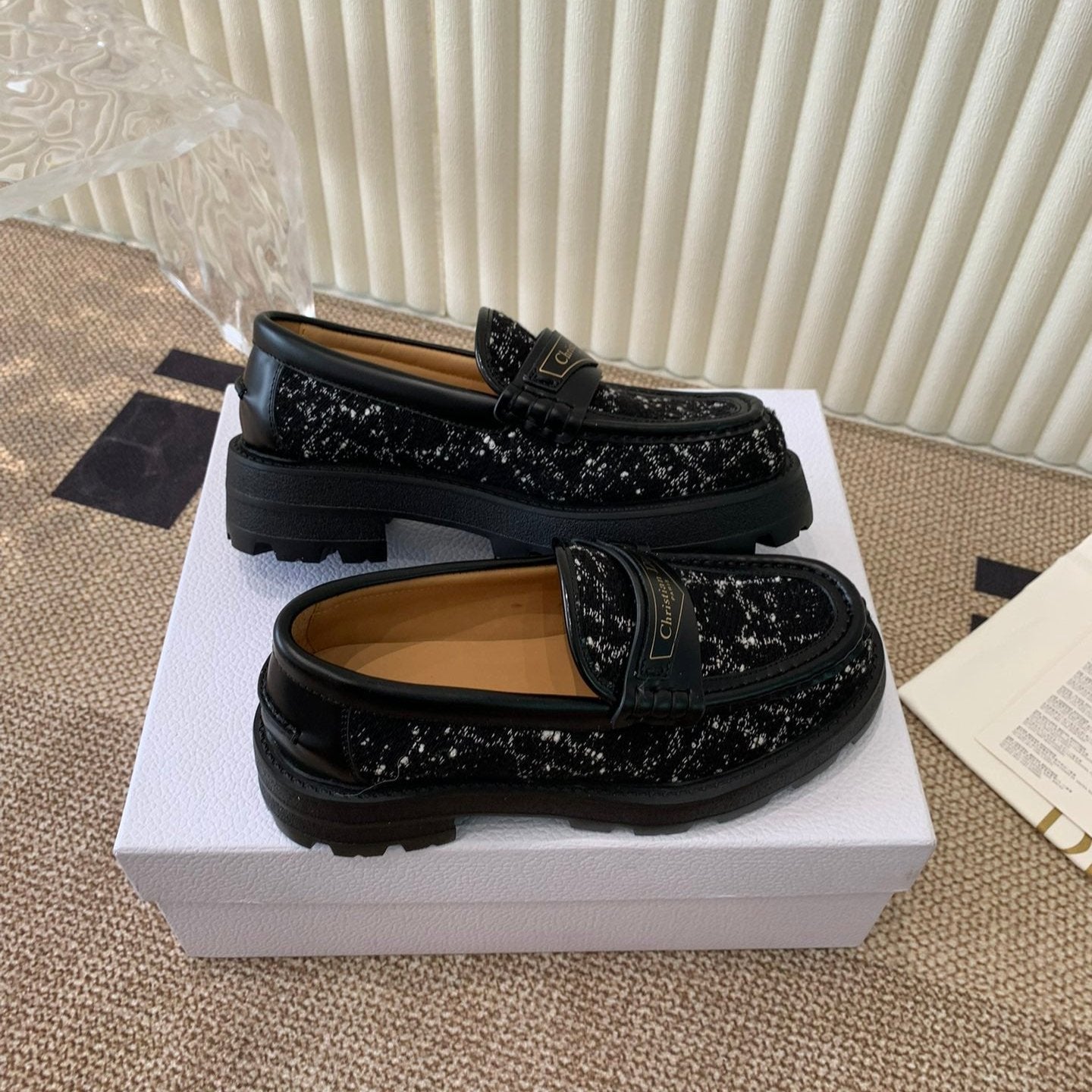 CD Boy Platform Loafer In Black Tweed Fabric And Cowhide 113487