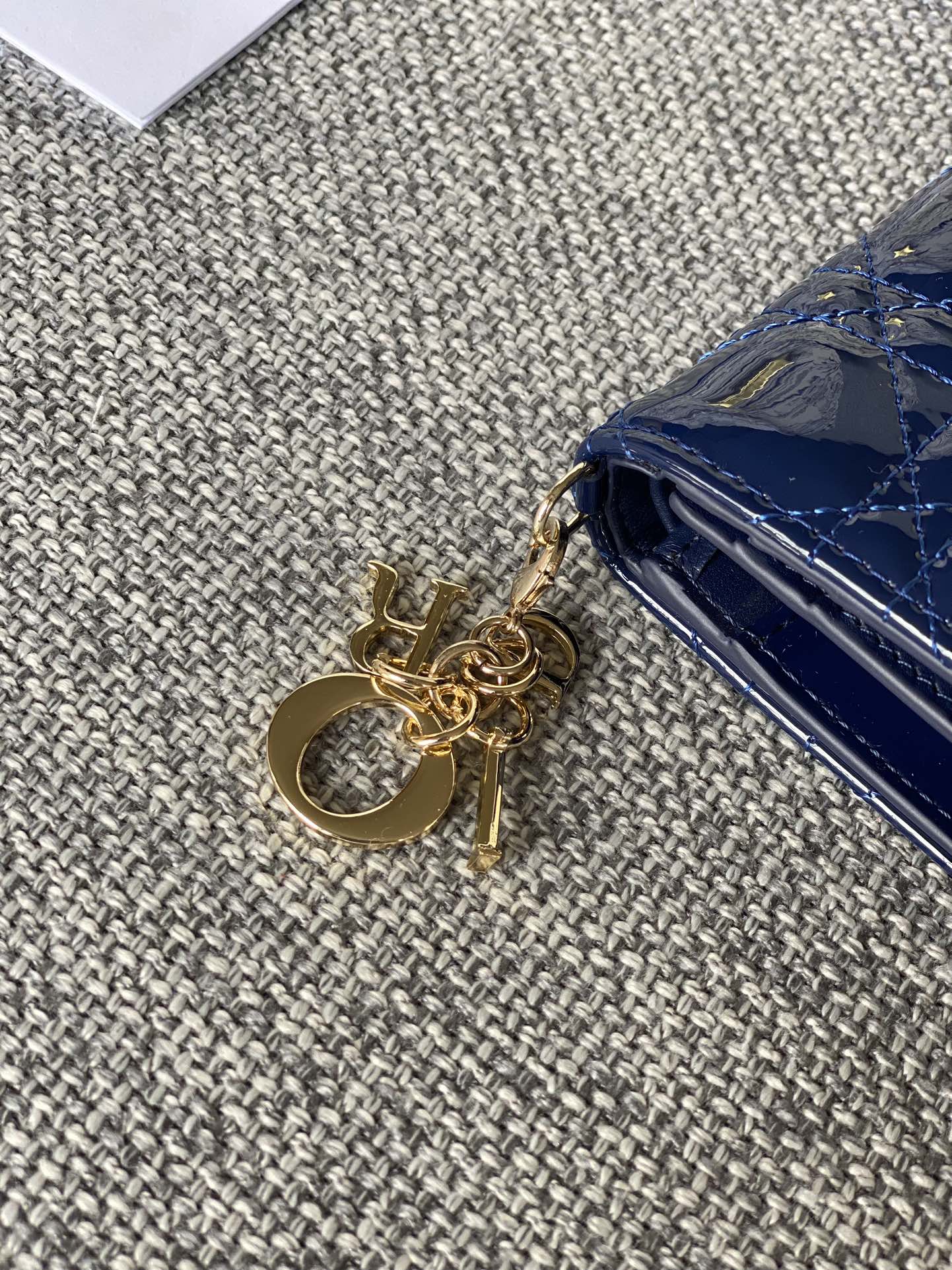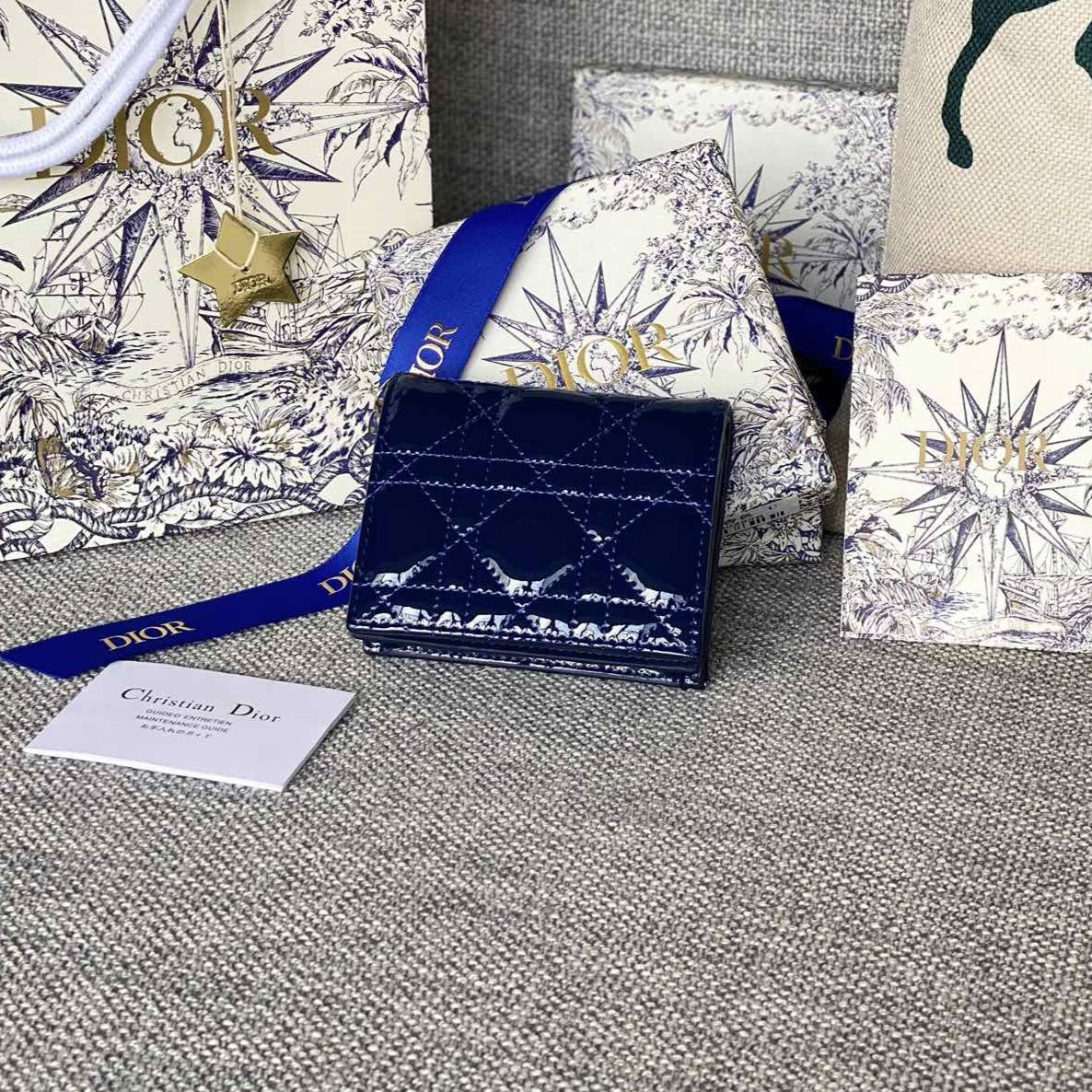 CD Caro 11cm Compact Wallet Shiny Blue Calfskin