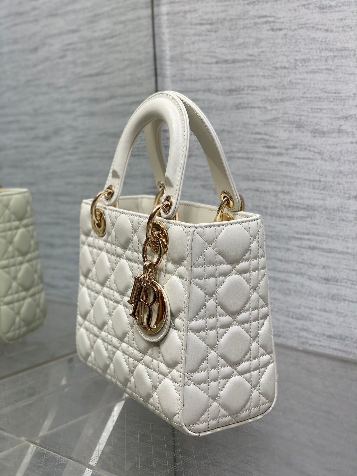 CD Lady Bag 20cm White Lambskin Light Gold Hardware