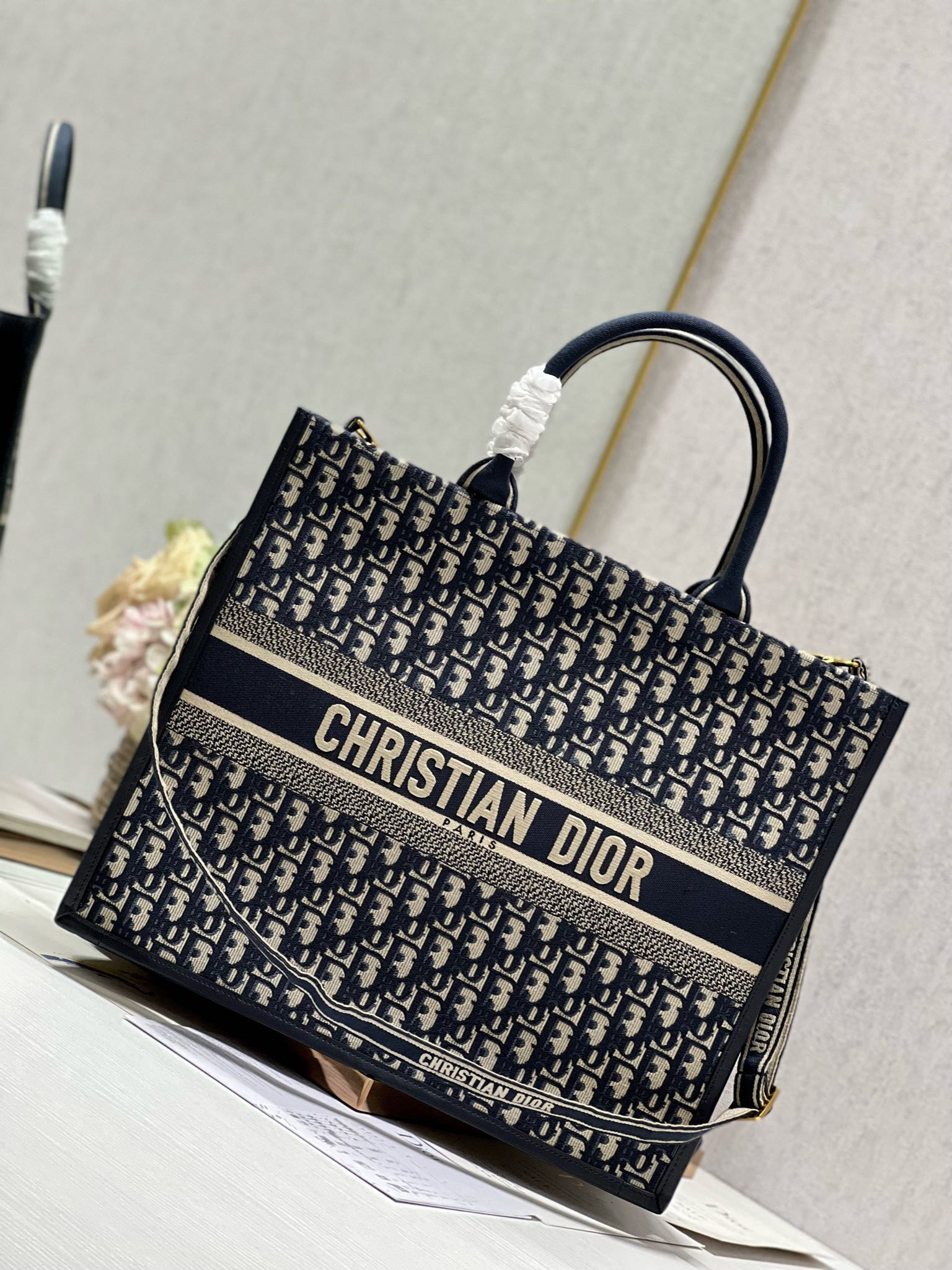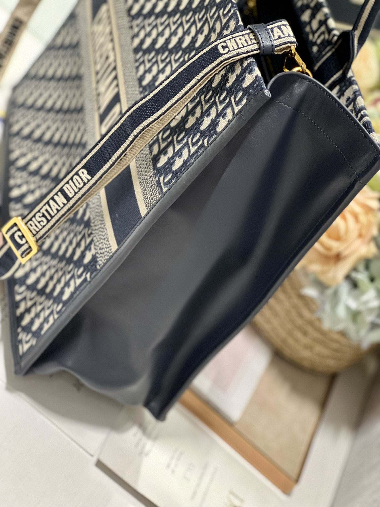 CD LARGE BOOK TOTE 42 BLUE OBLIQUE EMBROIDERY