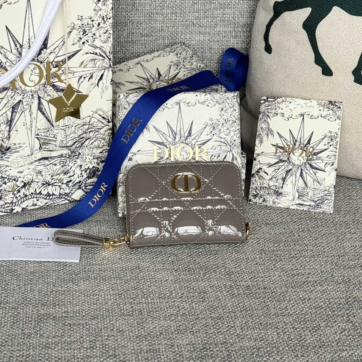 CD Logo Caro 11cm Compact Wallet Shiny Grey Calfskin