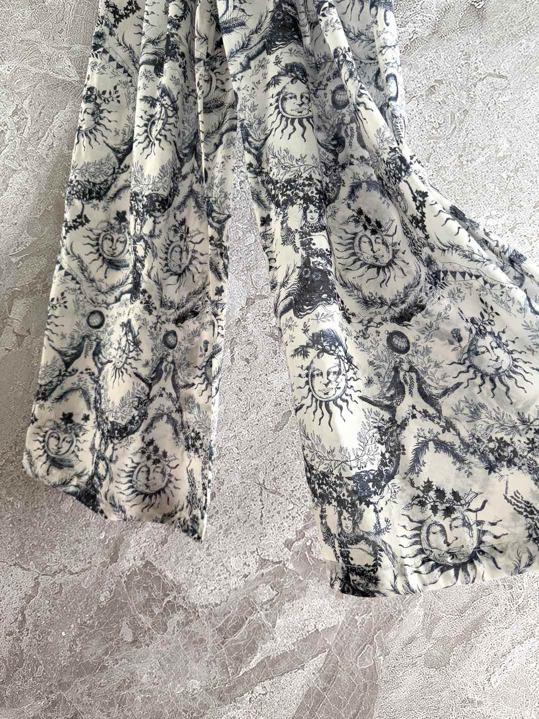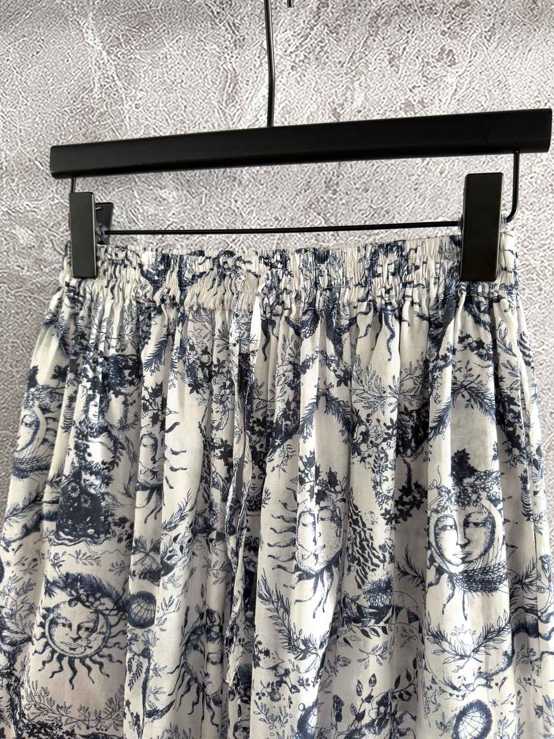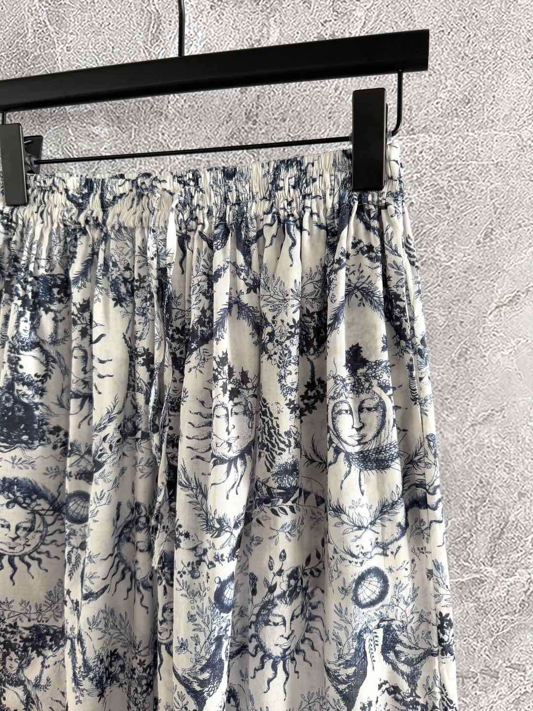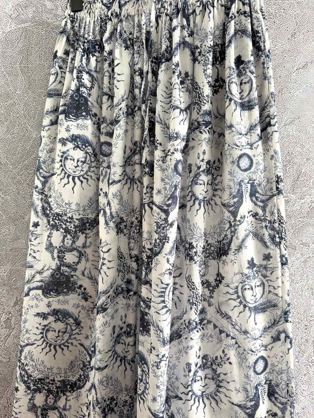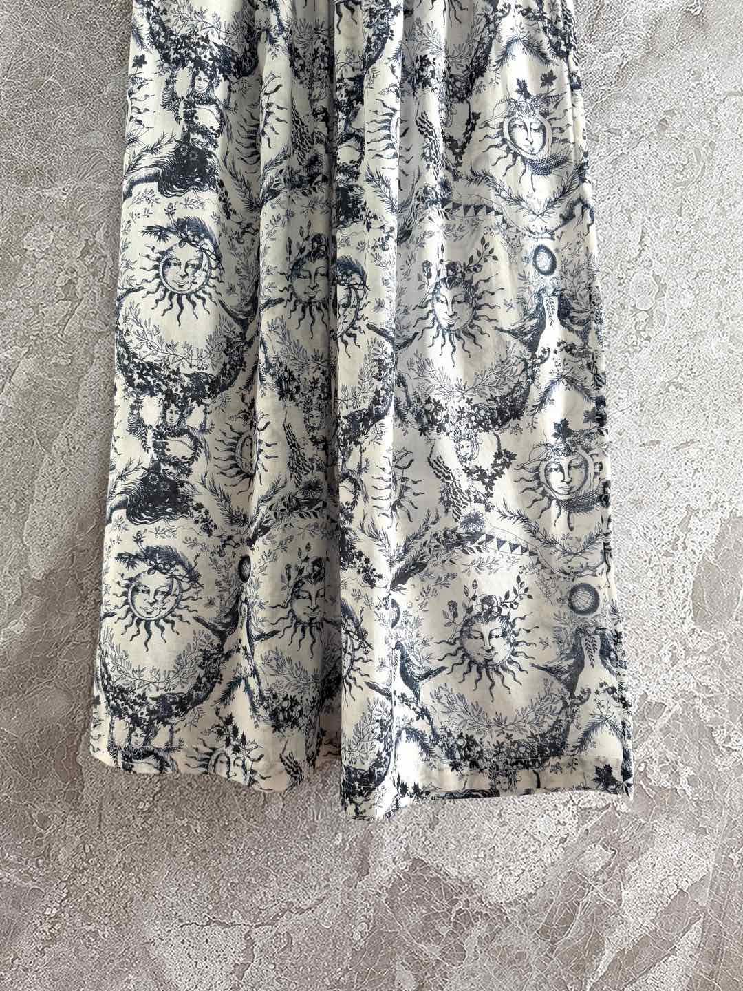 CD Sun God Printed Wide Leg Pants Beige Blue Cotton