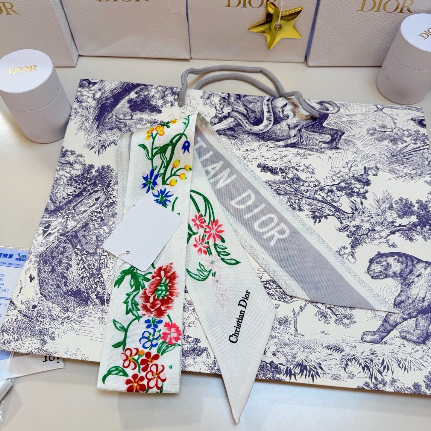 CD Twilly Mini Scarf 100cm White Colorful Mulberry Silk 958860