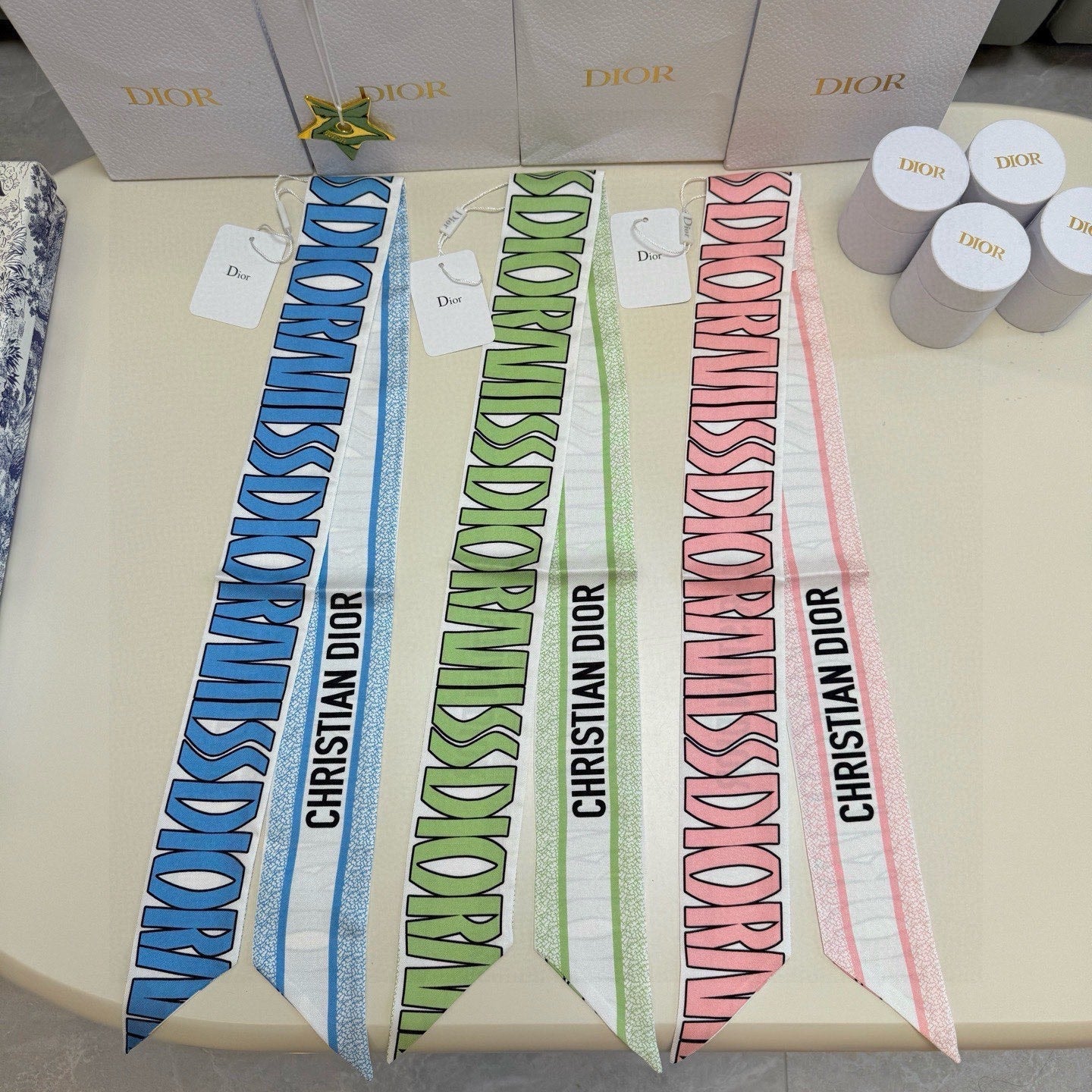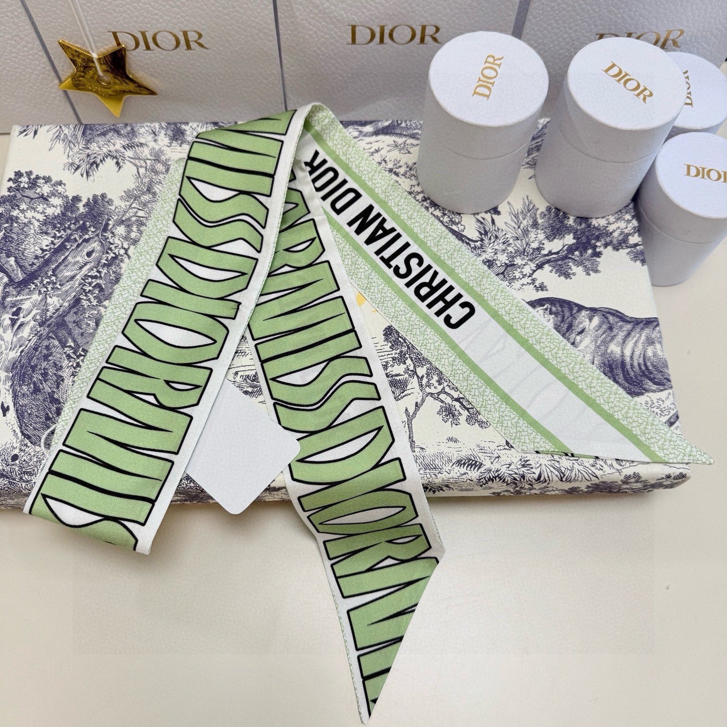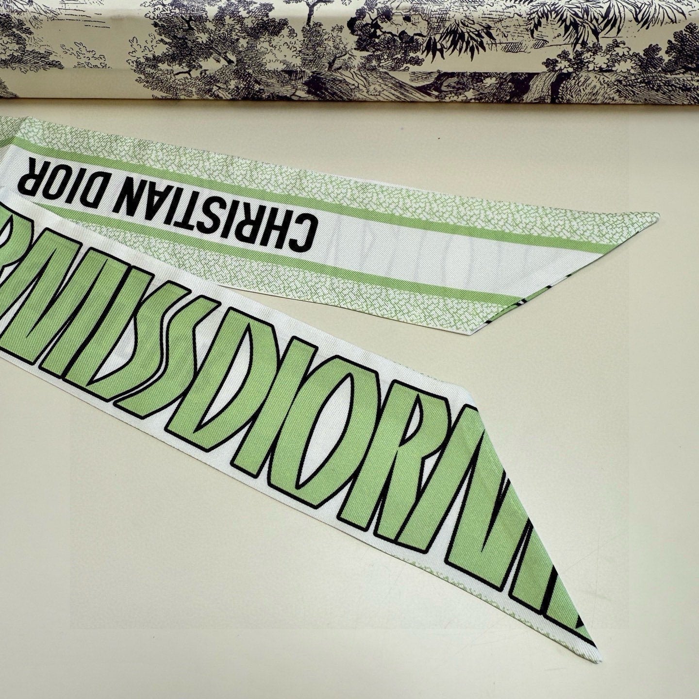 CD Twilly Mini Scarf 105cm Green Mulberry Silk 957051