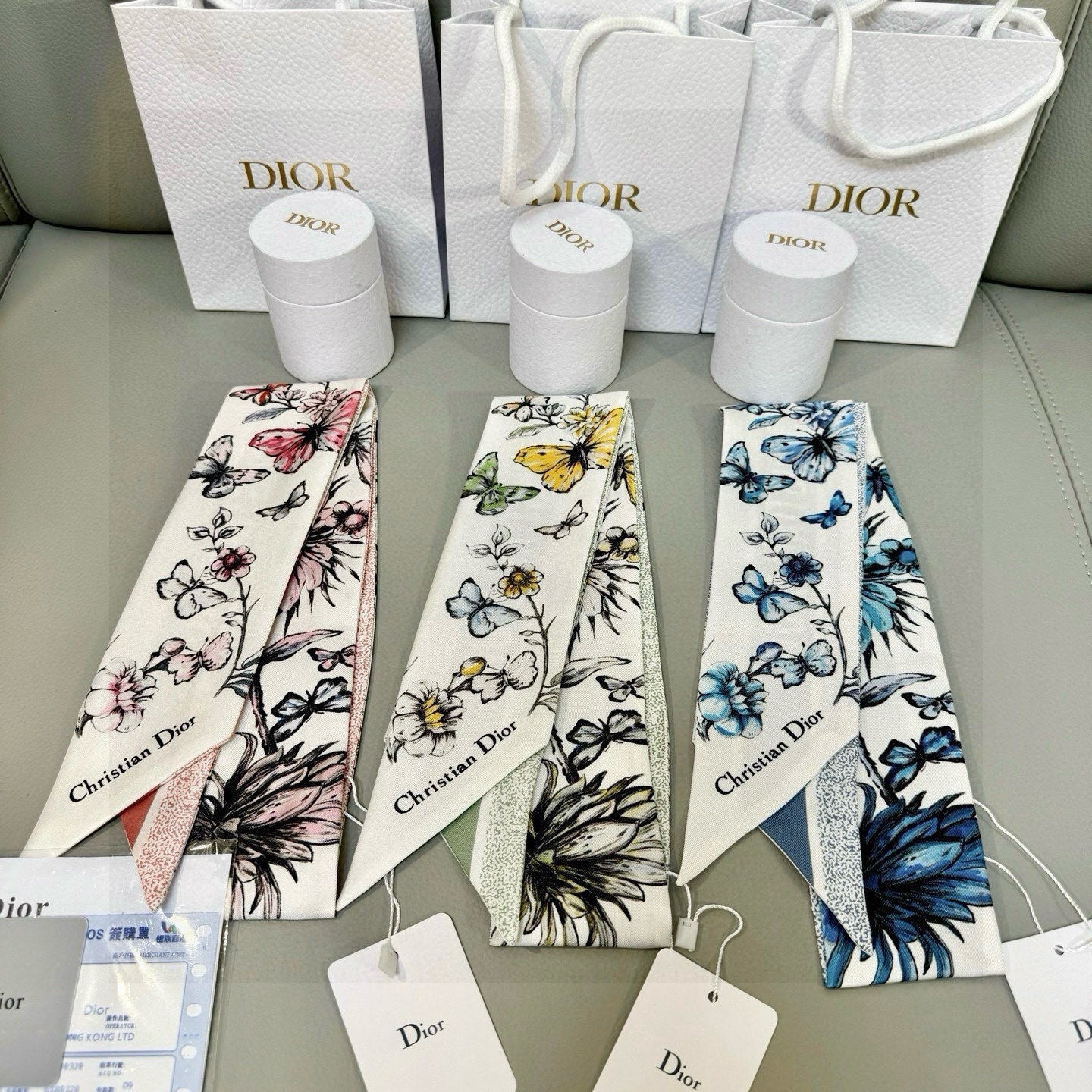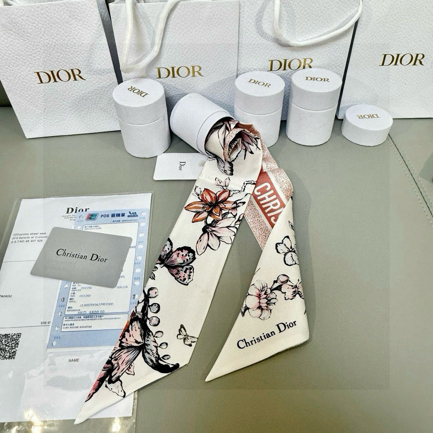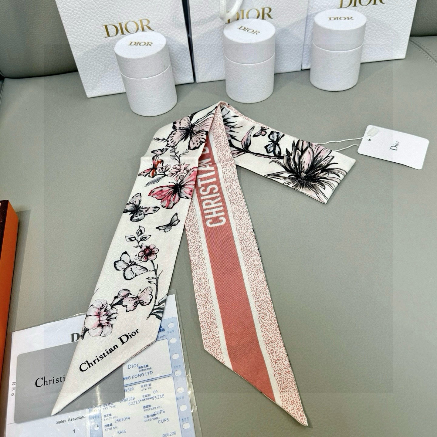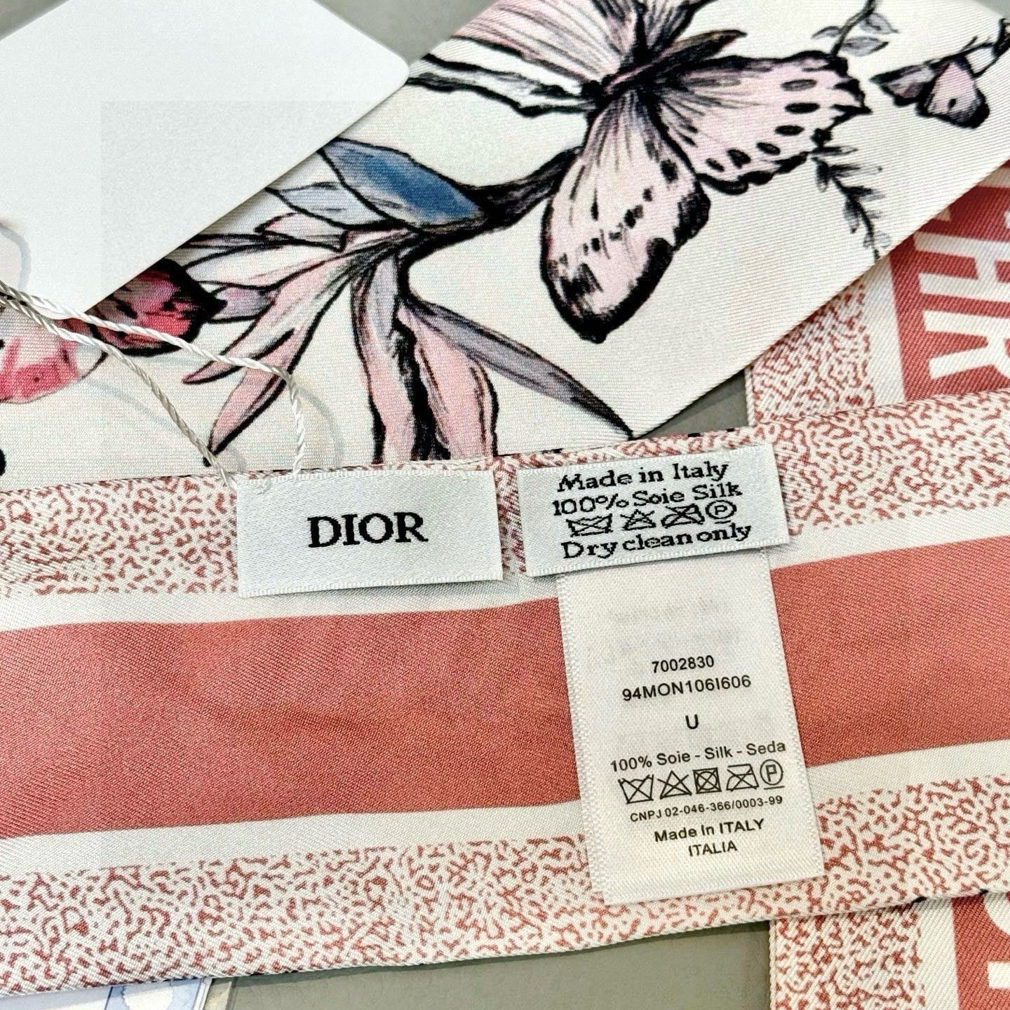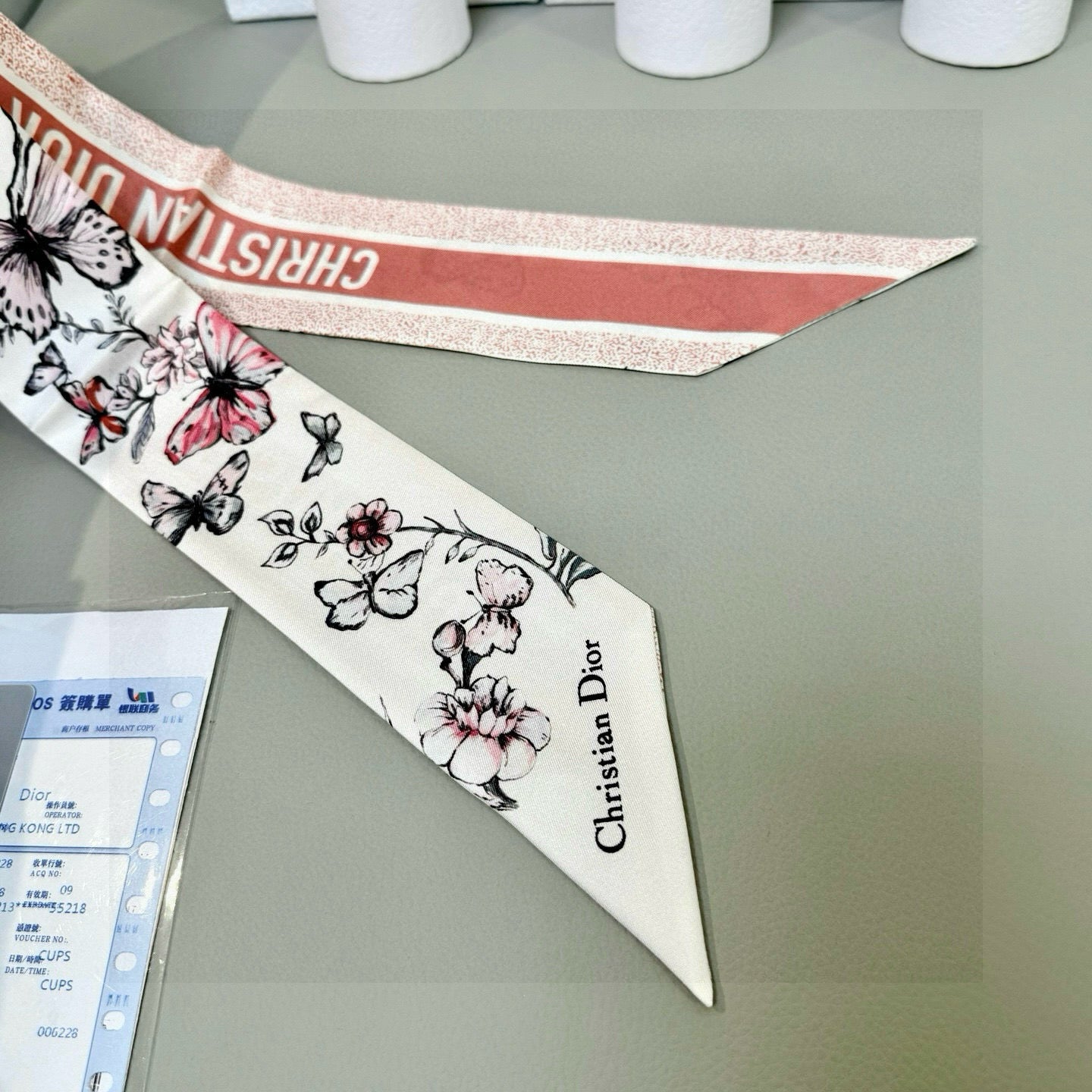 CD Twilly Mini Scarf 105cm Pink Black White Mulberry Silk 935252
