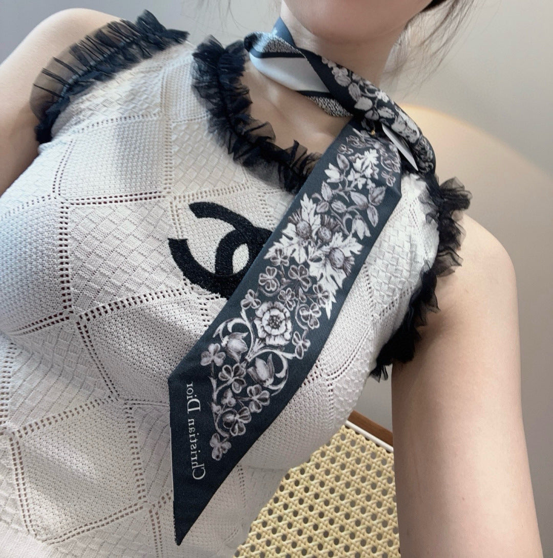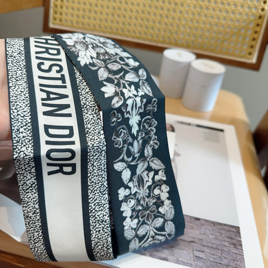 CD Twilly Mini Scarf 120cm Floral Black Mulberry Silk 958866