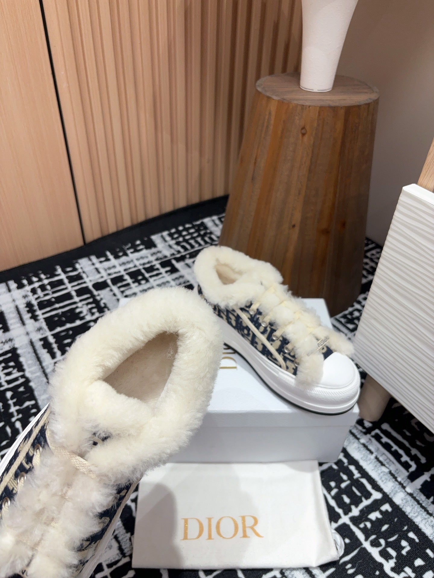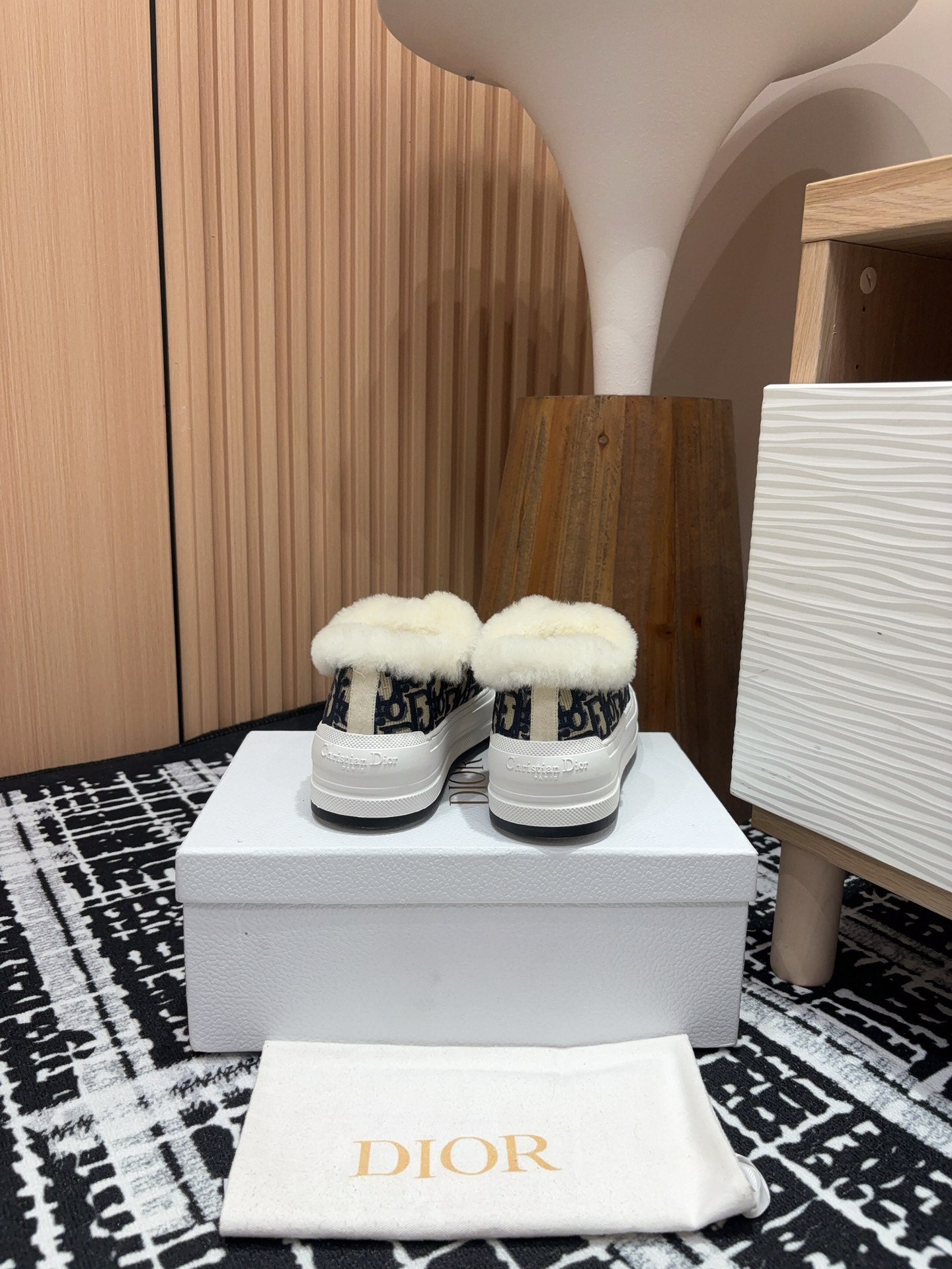 CD Walk'n'Dior Platform Sneaker Black Mix charcoal Blue Oblique Jacquard And Fleece Lining