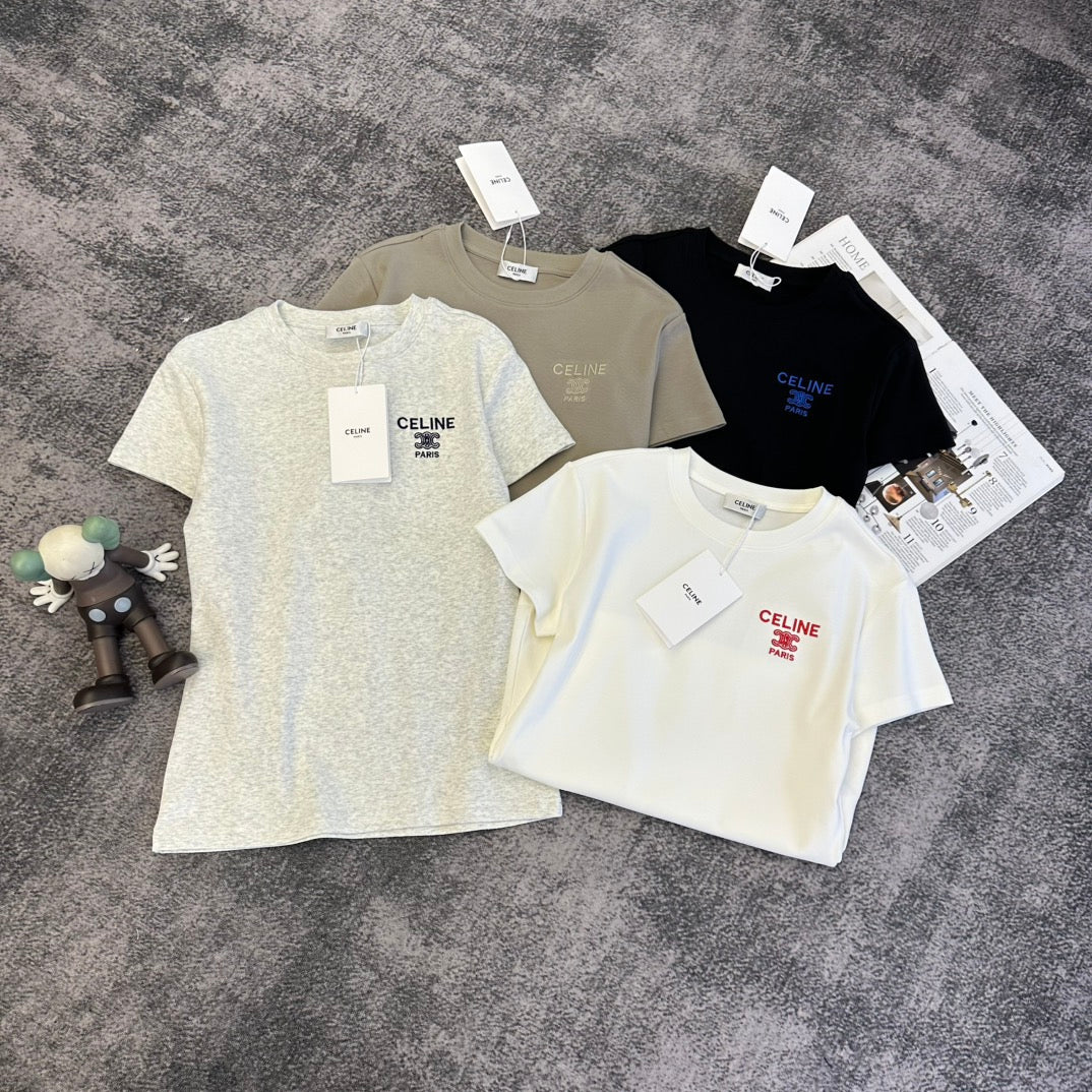 Celine 2026 T-Shirt Brown Black White Gray Cotton 359304