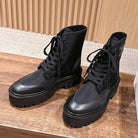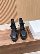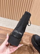 Celine 25 Bulky Lace-up Boot Black Canvas Calfskin 554013