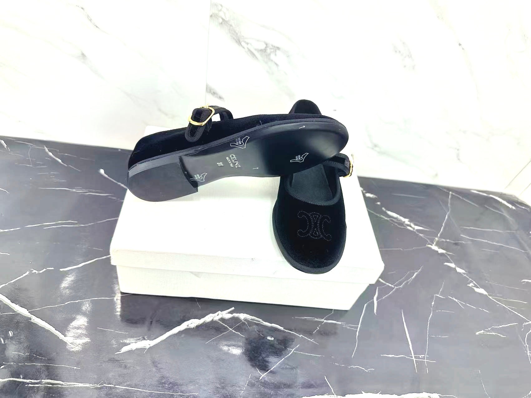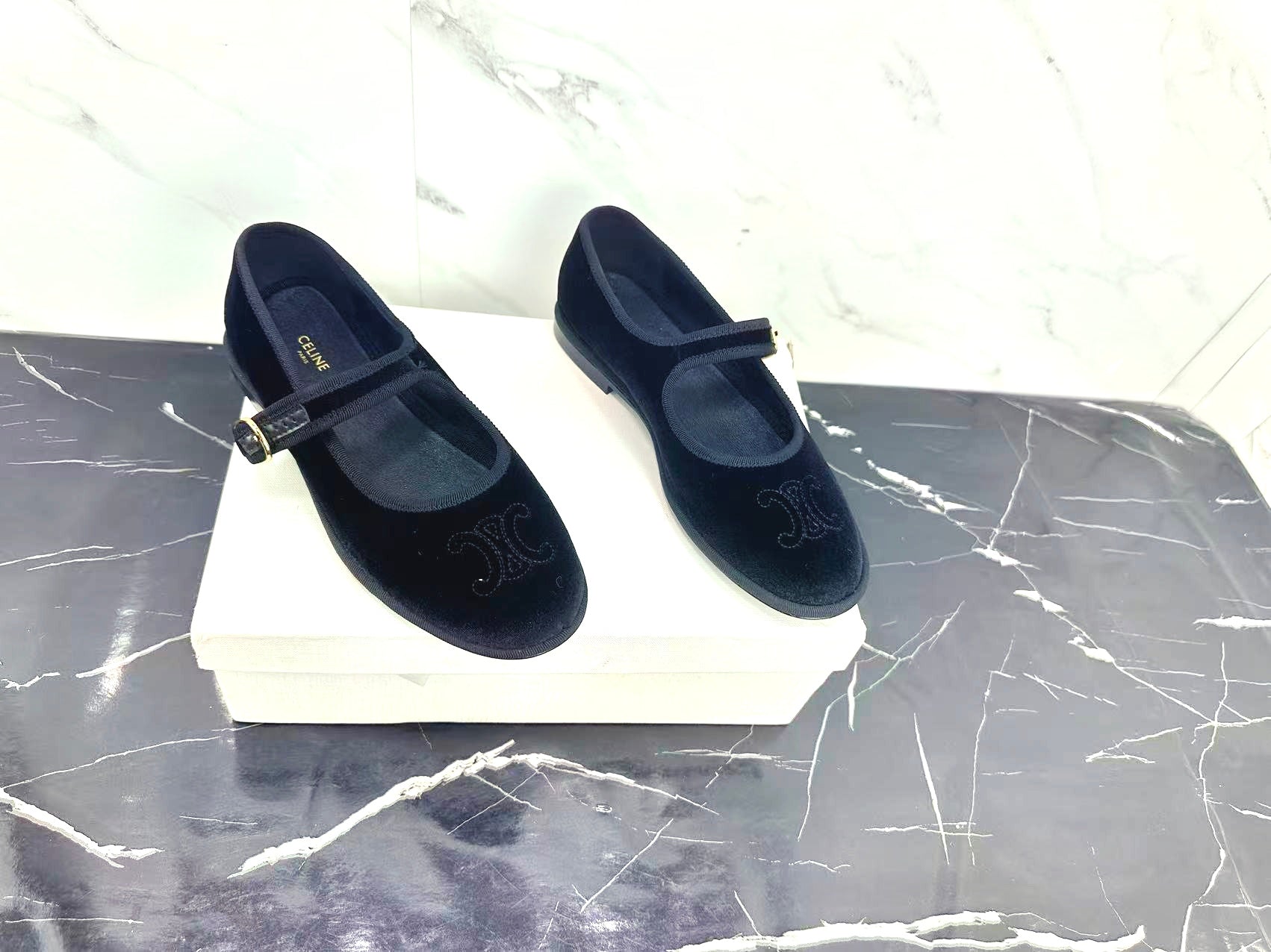 Celine 25 Eve Triomphe Ballet Flat Blue Velvet 547726