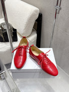 Celine 25 Lise Perforated Triomphe Richelieu Shoe Red Lambskin 554197