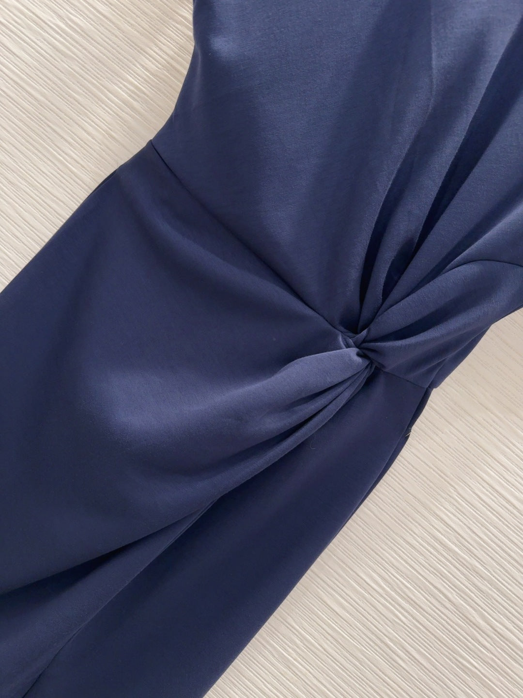 Celine 25 Twisted Waist Dress Navy Blue Cotton